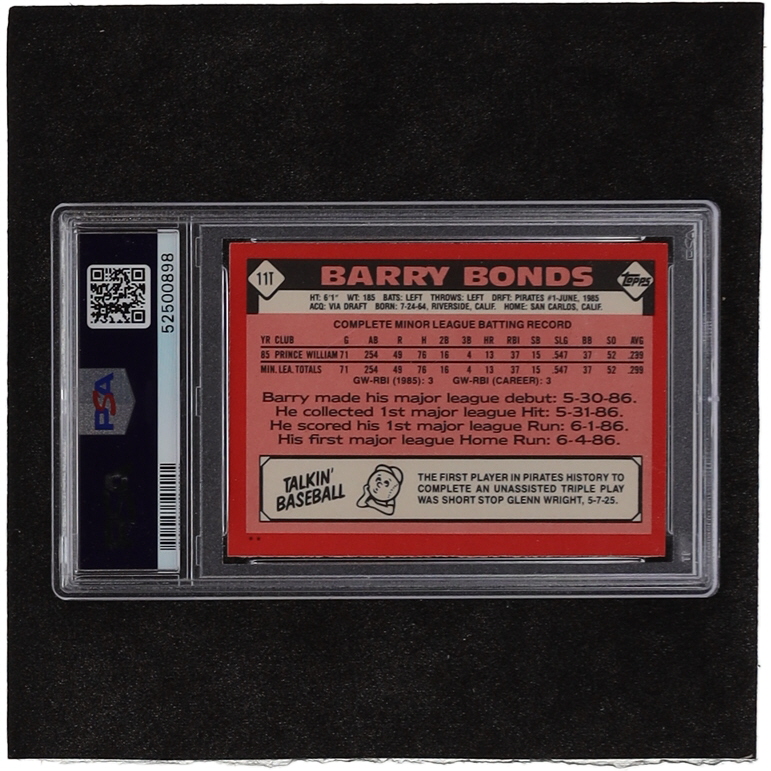 Barry Bonds 1986 Topps Traded #11T XRC (PSA 9)