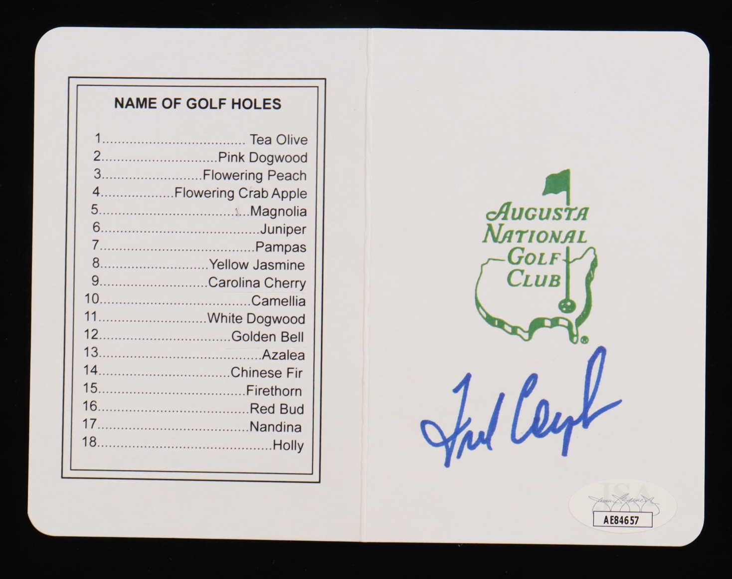 Augusta National Golf Club Score Card measures approximately 5" x 6" in size and has been hand-signed by Fred Couples (HOF).