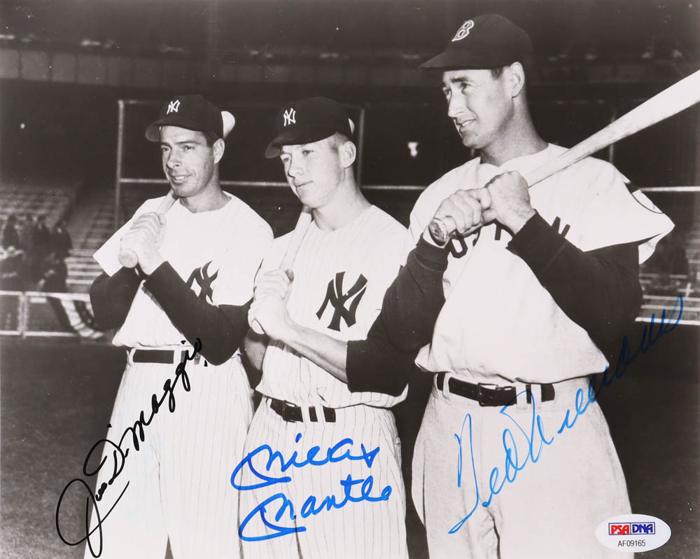 Mickey Mantle, Ted Williams & Joe DiMaggio Signed 8x10 Photo (PSA)