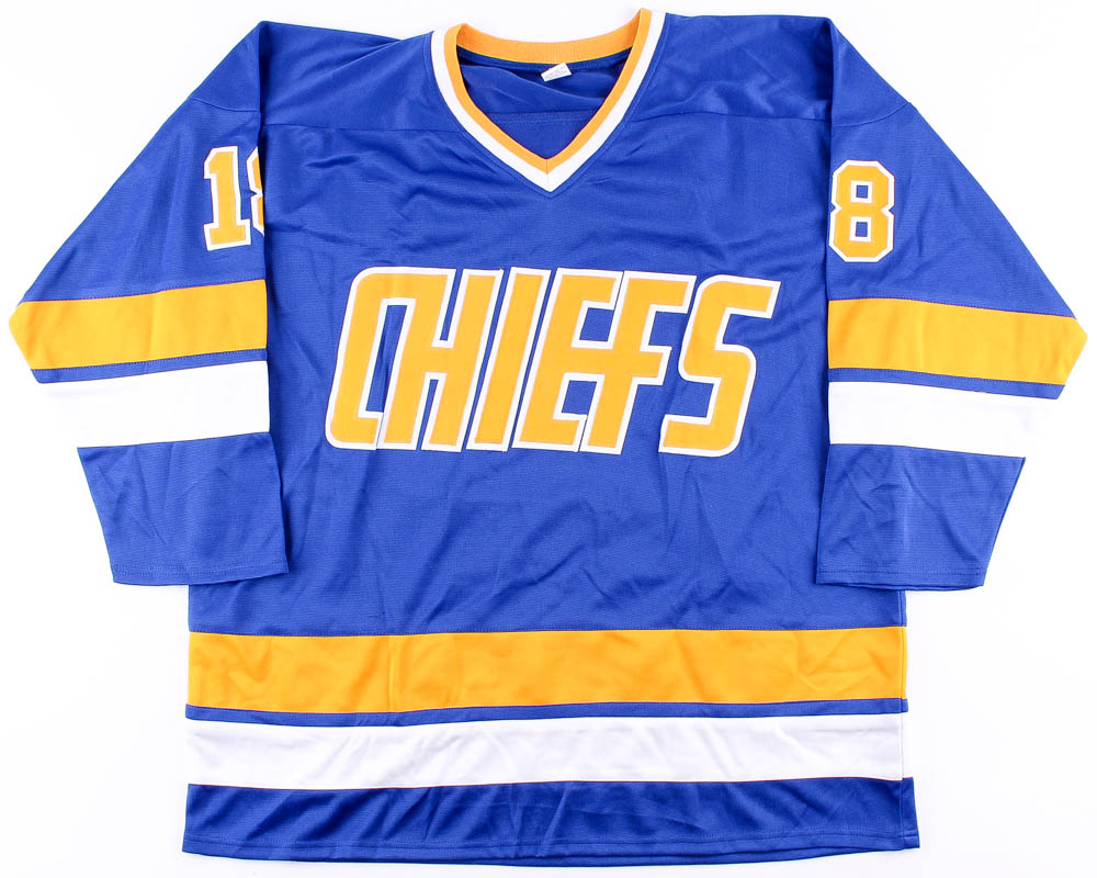 Dave Hanson, Steve Carlson & Jeff Carlson Signed Hanson Brothers "Slap Shot" Chiefs Jersey Inscribed "Slap Shot" (JSA COA)