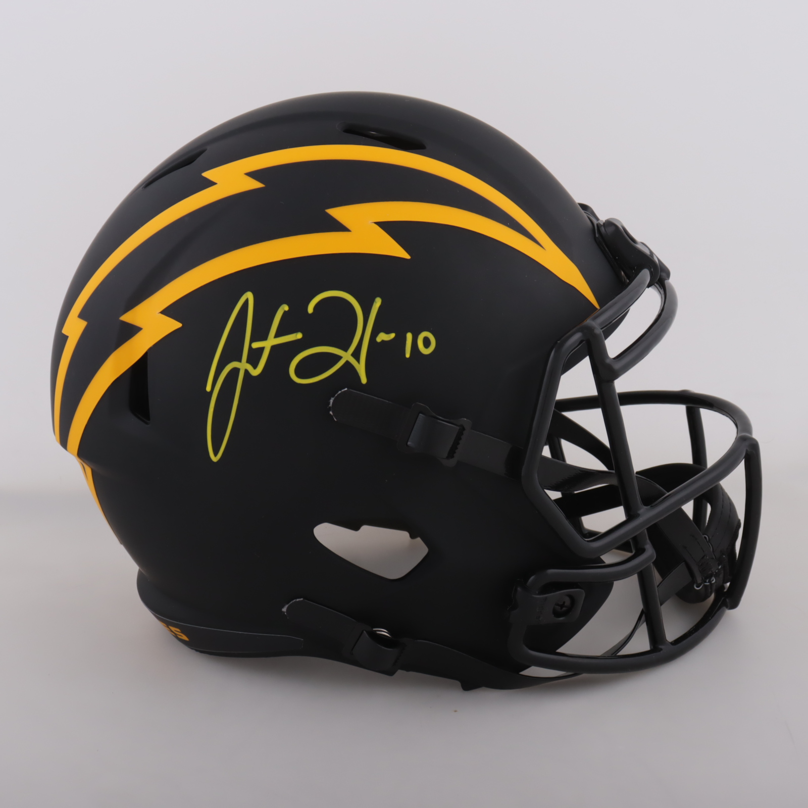 Riddell Los Angeles Chargers Full-Size Eclipse Alternate Speed Replica helmet. Hand-signed by Justin Herbert.
