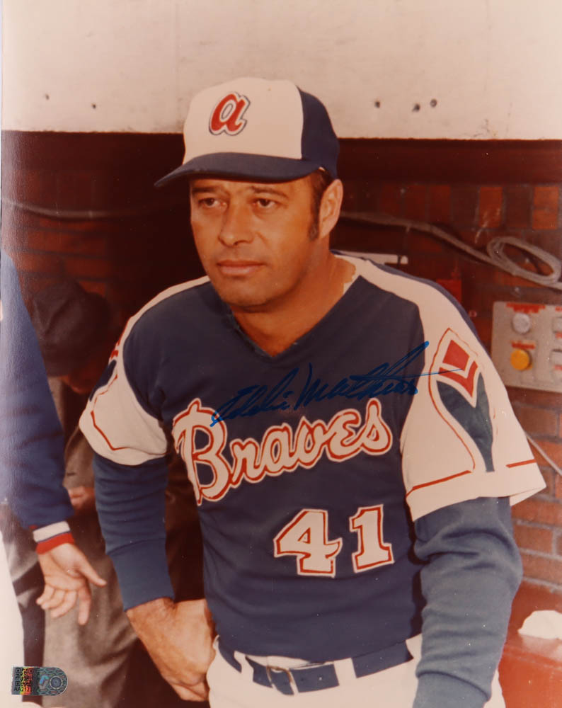 Photo measures 8" x 10" in size. Hand-signed by Eddie Mathews (D. 2001, Atlanta Braves, HOF).