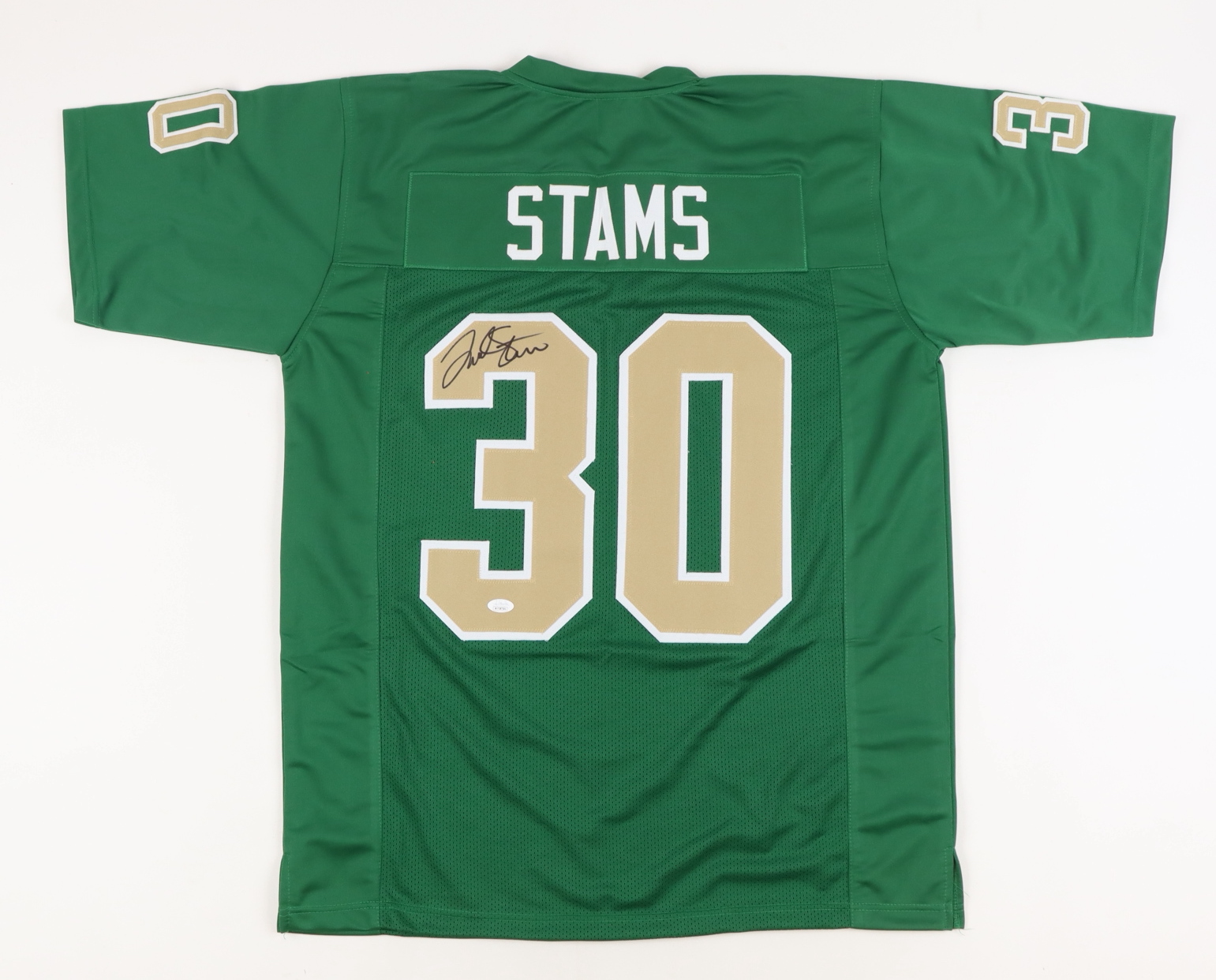 Custom on-field style jersey. Everything is sewn on, size XL. Hand-signed by Frank Stams.