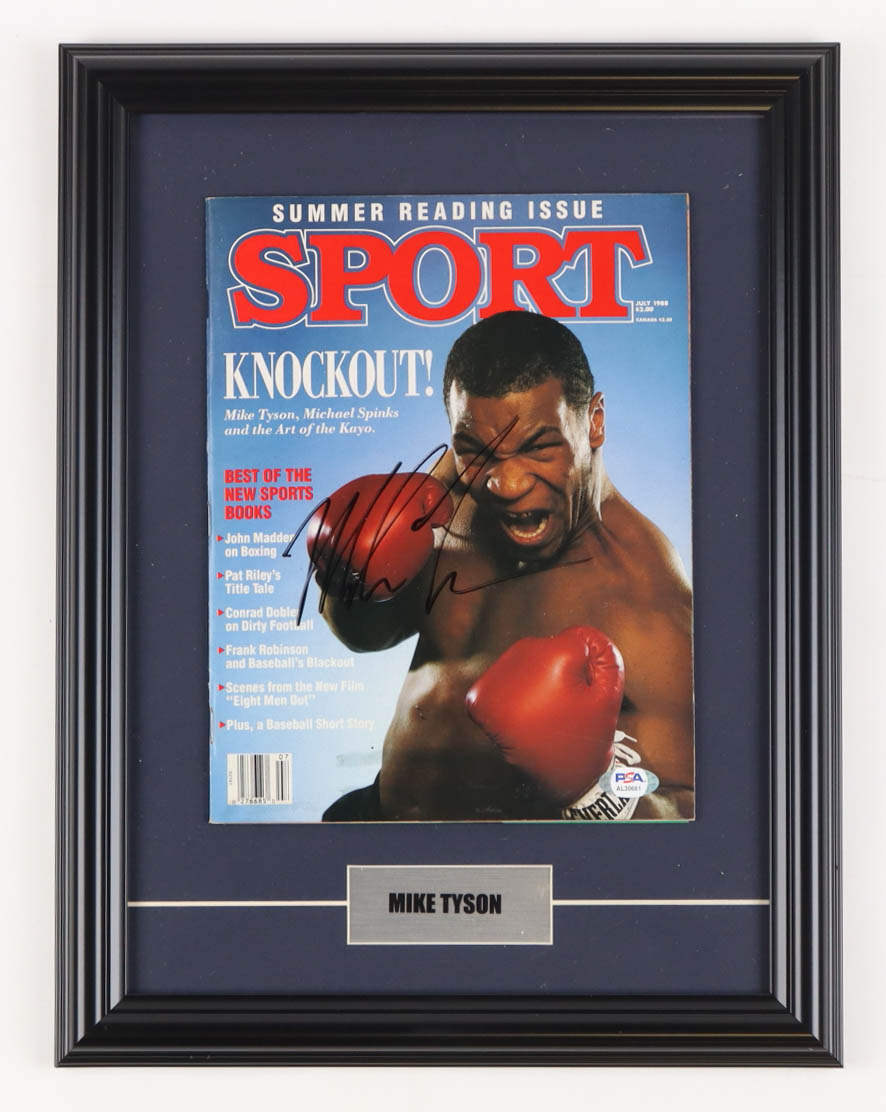 Custom frame measures 13" x 17" in size and features a full July 1988 "Sport" magazine that has been hand-signed by Mike Tyson (HOF).