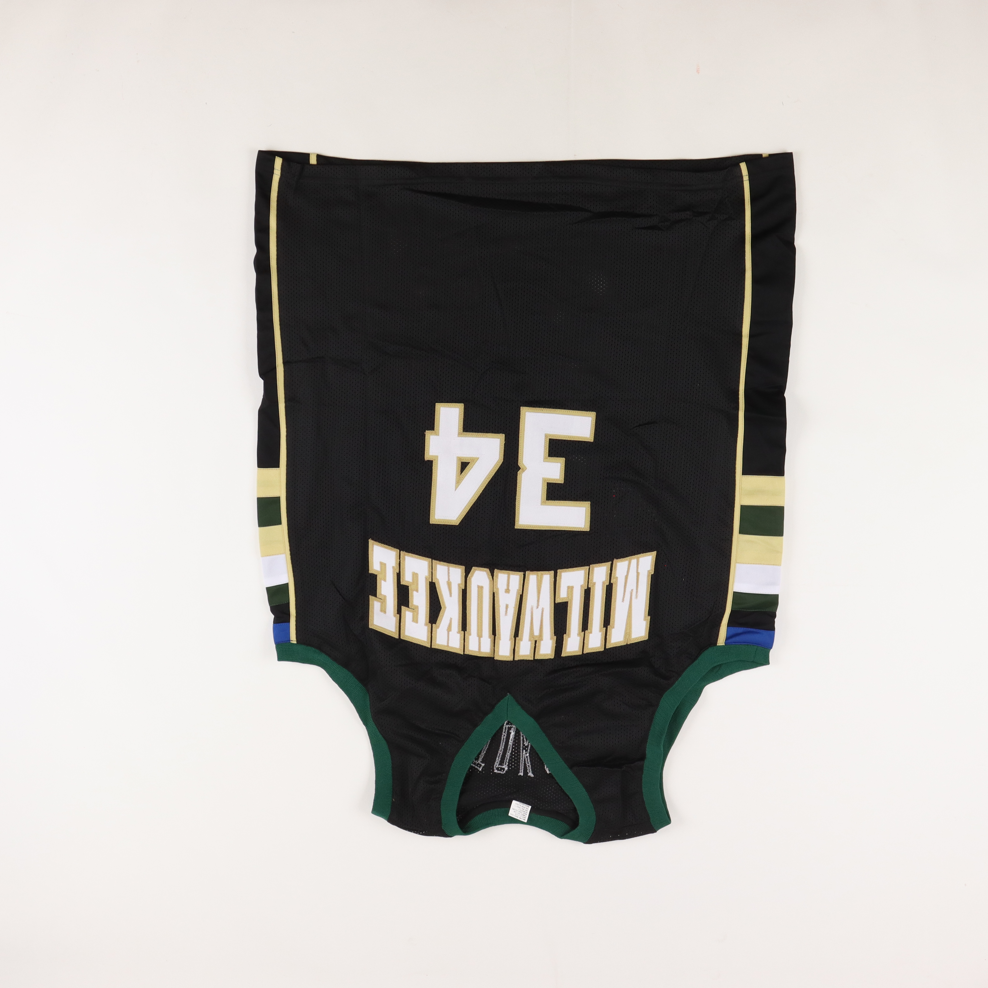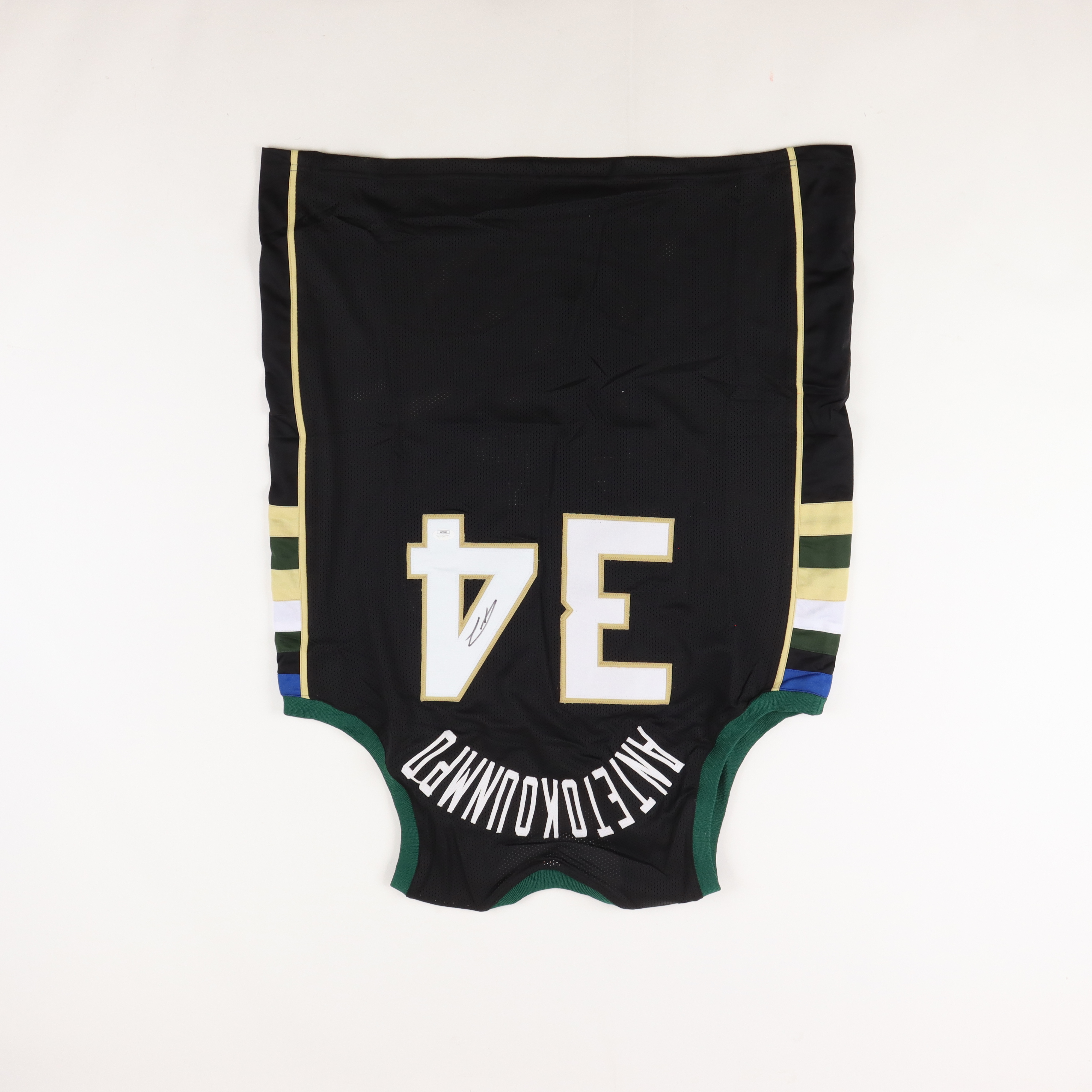 Custom on-court style jersey. Everything is sewn on, size XL. Hand-signed by Giannis Antetokounmpo.
