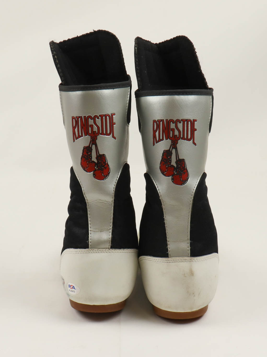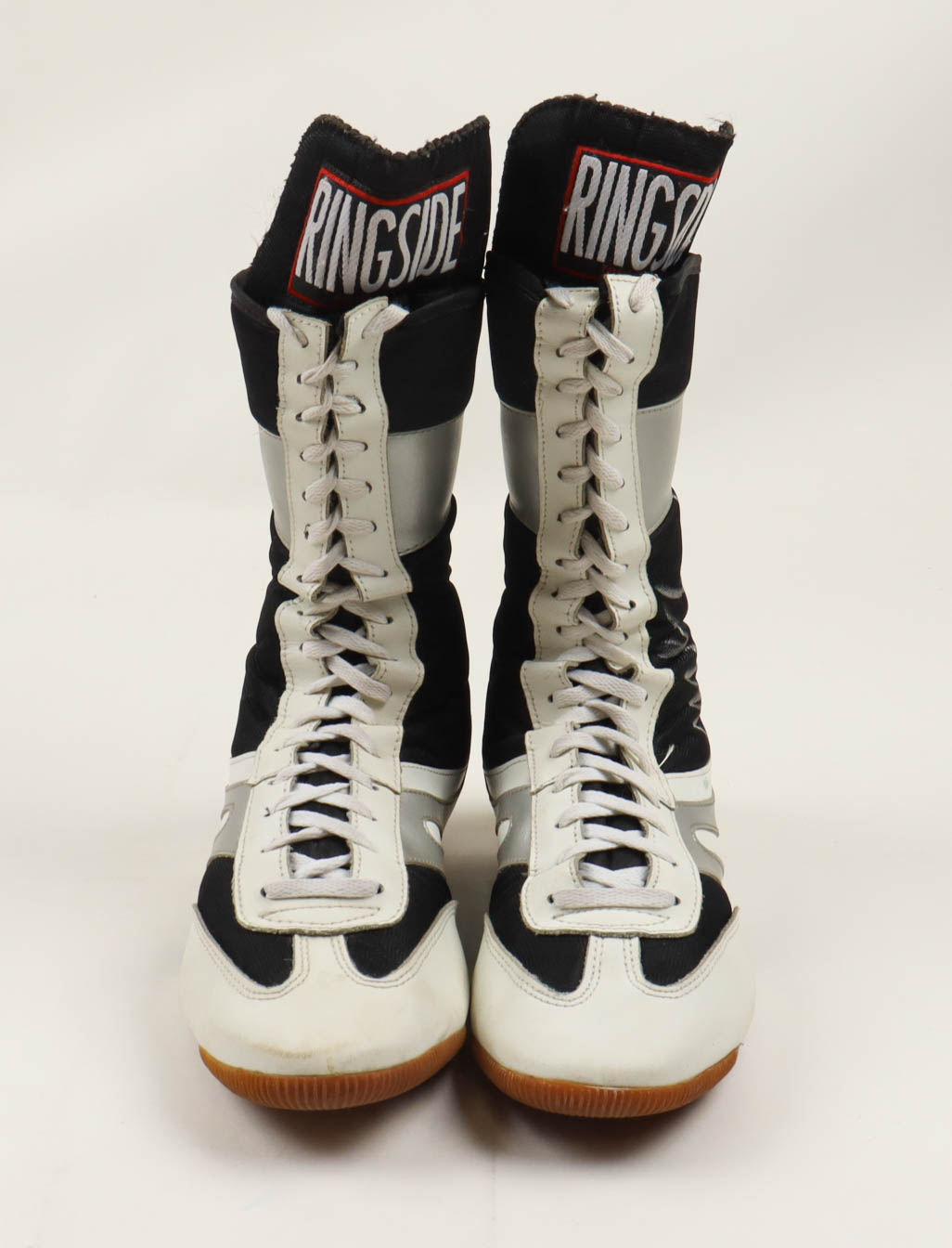 Pair of (2) Ringside boxing boots. The left shoe has been hand-signed by Mike Tyson (HOF). Please note, the soles of both shoes have writing from and unknown hand and Tyson's signature is lightly faded.