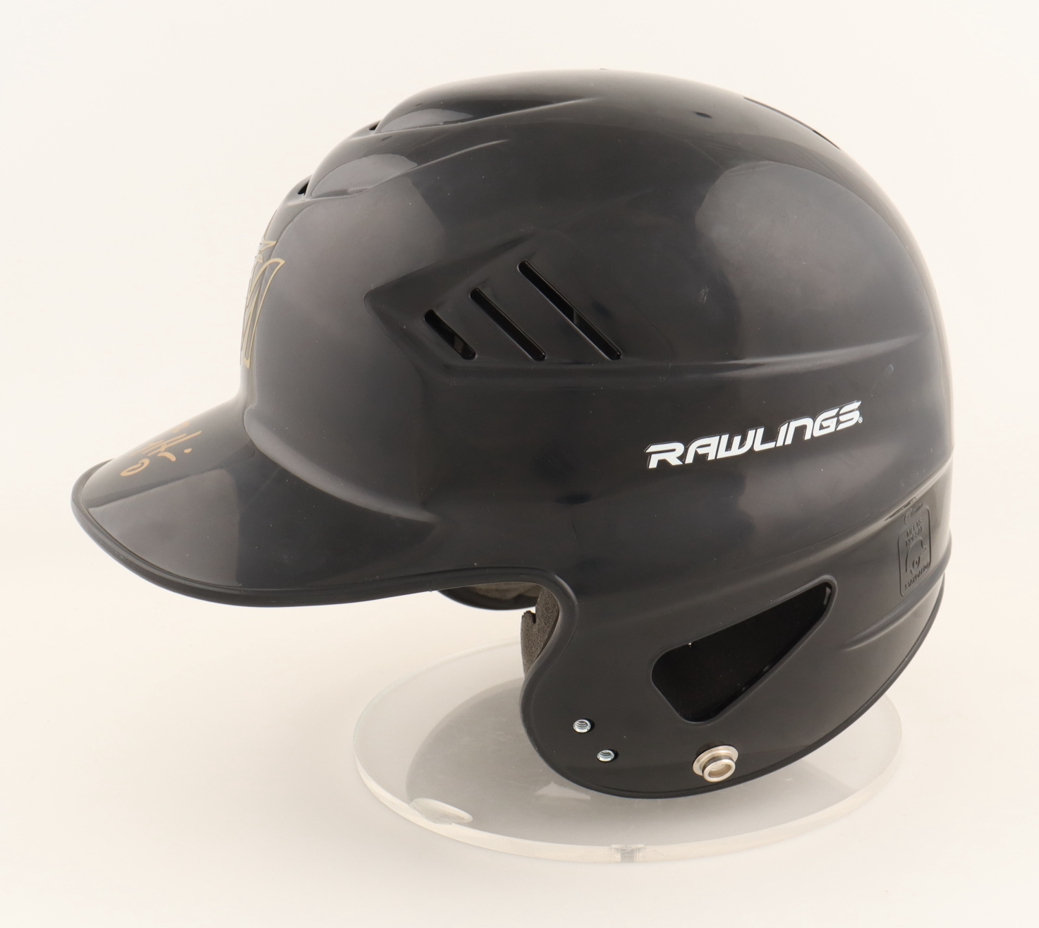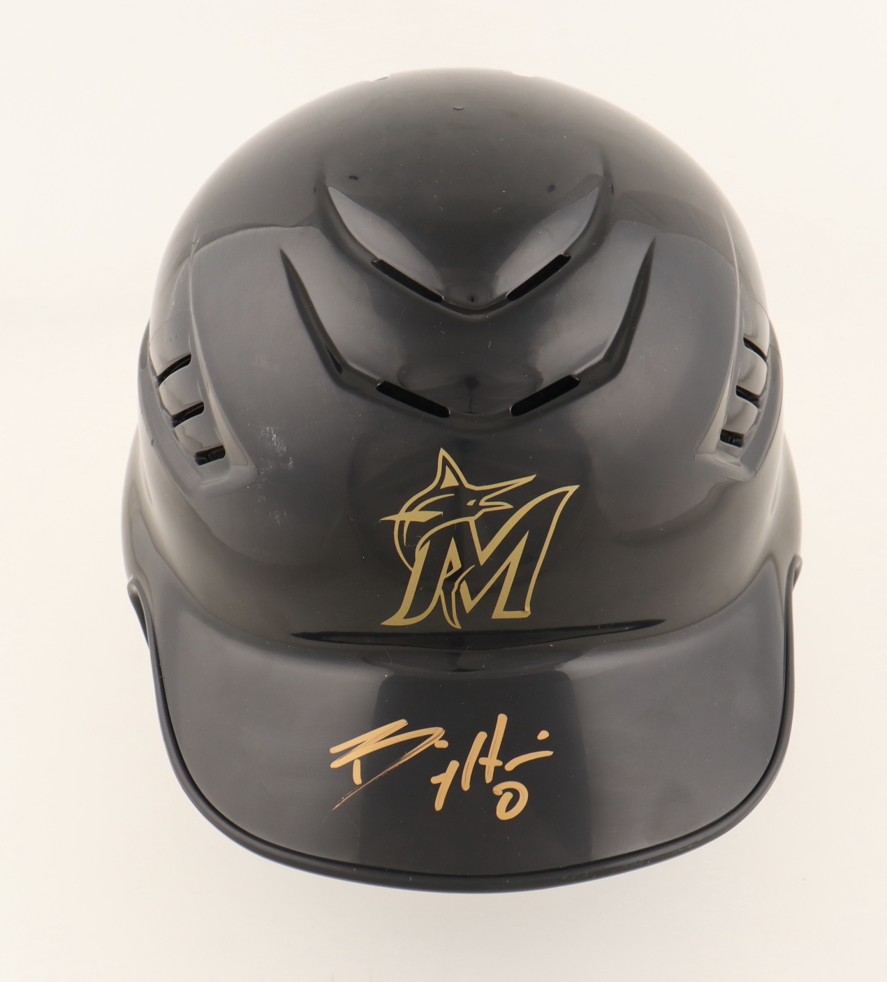 Rawlings Miami Marlins full-size authentic on-field batting helmet. Hand signed by Billy Hamilton.