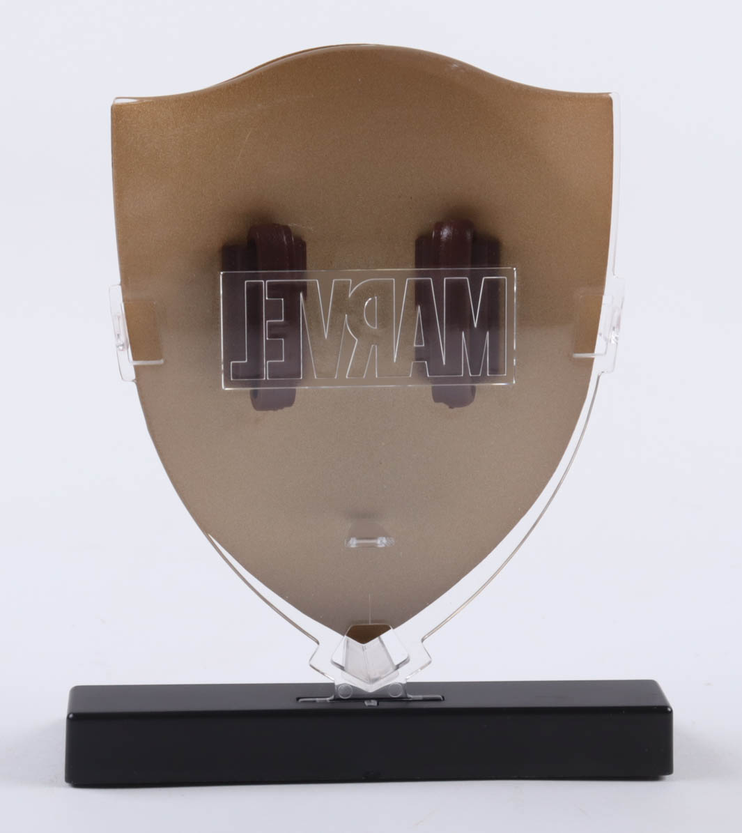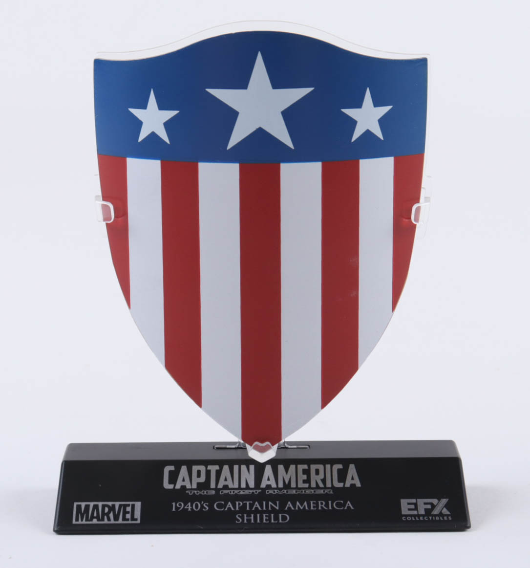 EFX miniature 1:6 scale "Captain America: The First Avenger" 1940s shield prop replica. Measures approximately 5.5" tall with the stand. Created using the original digital files and reference materials from Marvel Studios.
