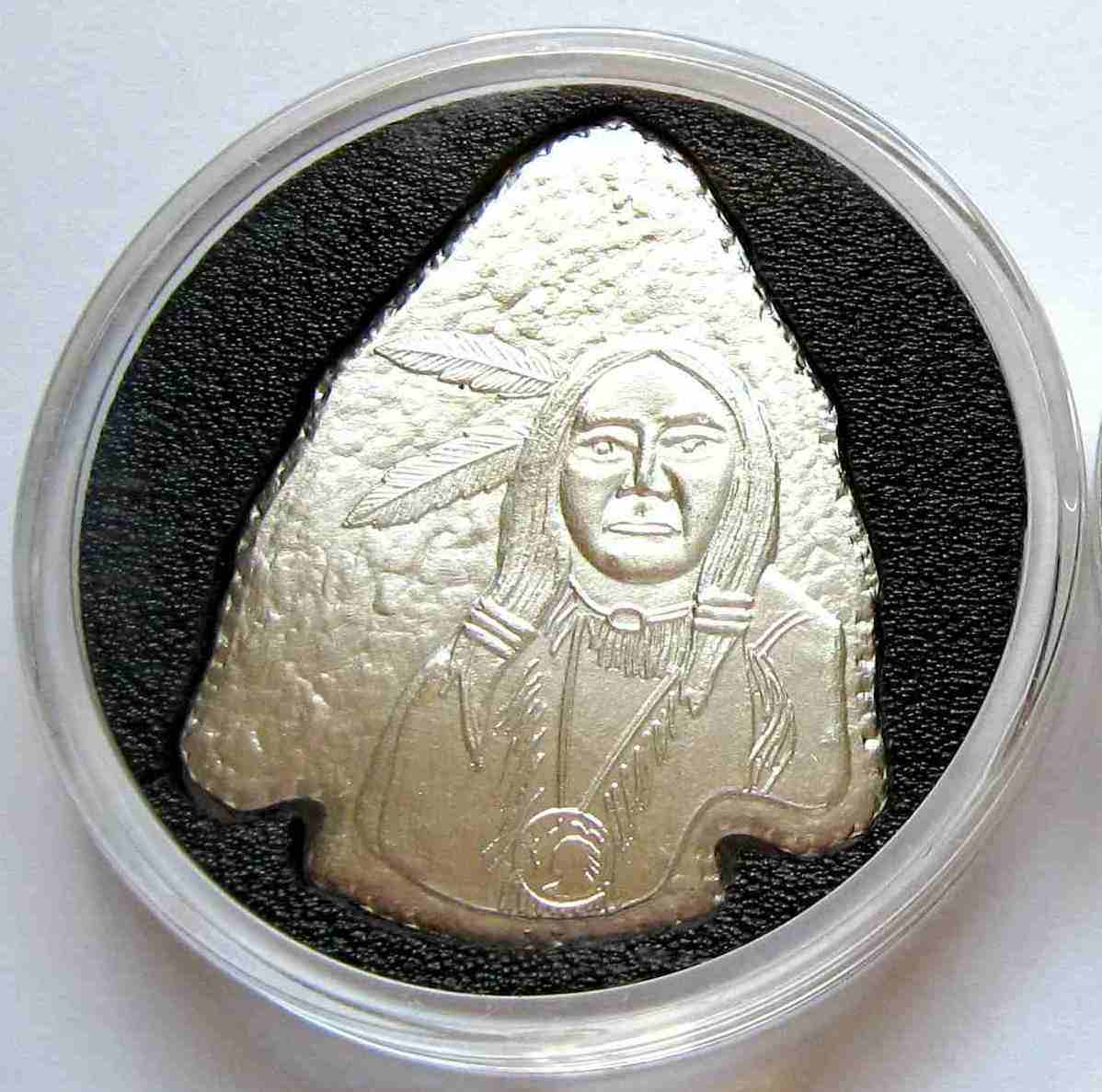 Indian Warrior 1 Troy Ounce .999 Silver Arrowhead. Please see photos for details regarding the condition of the coin.