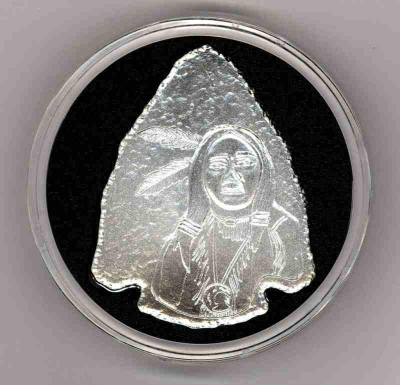 Indian Warrior 1 Troy Ounce .999 Silver Arrowhead