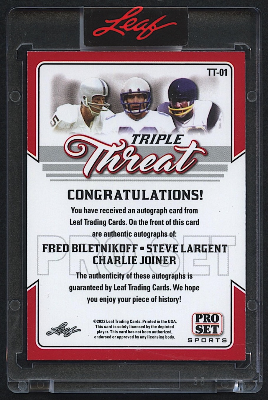 Fred Biletnikoff / Steve Largent / Charlie Joiner 2022 Leaf Pro Set Triple Threat #TT-01 Triple Autograph #1/4