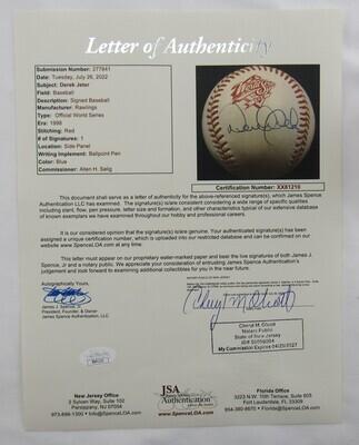 Rawlings Official 1998 World Series Logo Baseball. Hand-signed by Derek Jeter (New York Yankees, HOF).