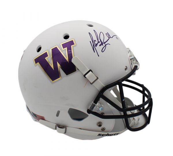 Schutt Washington Huskies full-size replica Matte White helmet. Hand-signed by Mark Brunell.