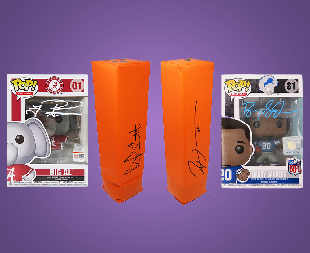 BRADY Box contains TWELVE (12) autographed items of football memorabilia – 2 full-size helmets, 2 custom football jerseys, 2 mini helmets, 2 full-size footballs, 1 Pylon, 1 Other Item (Funko or 16x20 Photo) and 2 Small Flat Items (photos/ magazines/ encapsulated cards) – as well as a Tom Brady or Pats / Bucs Super Bowl championship novelty item in Every box from Funkos to Lanyards and more. There are over 220 different Players included in this Series 4 BRADY Box Mystery Box, which is a Pristine Exclusive Edition that is limited to 112 boxes. You will NOT receive duplicates of the same Player in the same box. 12 Different Autographs In Every Box
