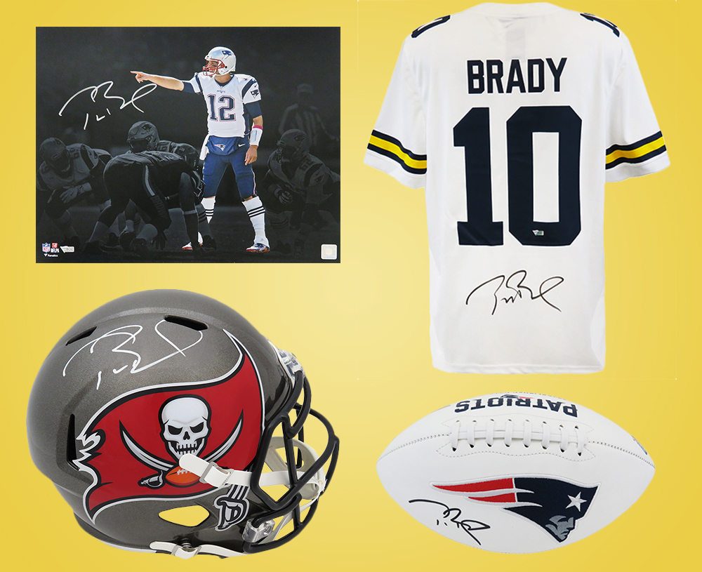 Look for the FOUR (4) TOM BRADY AUTOGRAPHS!!! – 12 Autographed Items PER Box!!! (Tom Brady, Patrick Mahomes, Joe Burrow, Justin Herbert & More!!)