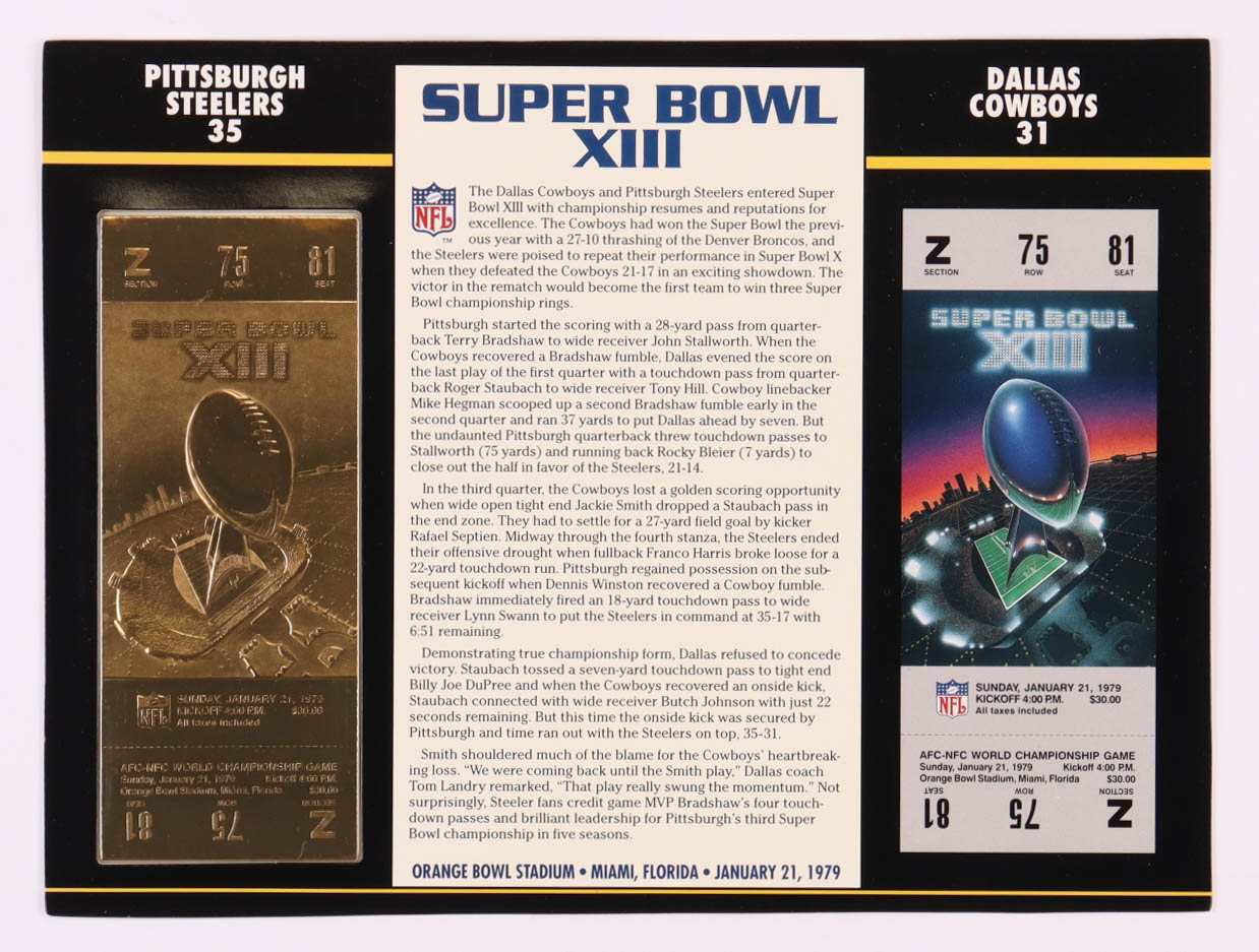 1979 Commemorative Super Bowl XIII Card with Ticket: Steelers vs Cowboys