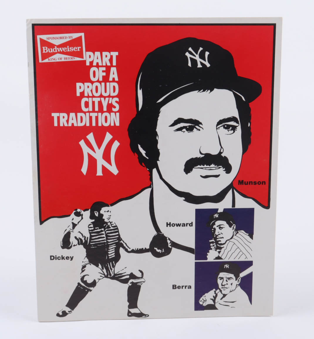 Vintage 1970s Yankees Budweiser Cardboard Stand-Up Sign with Yogi Berra & Thurman Munson