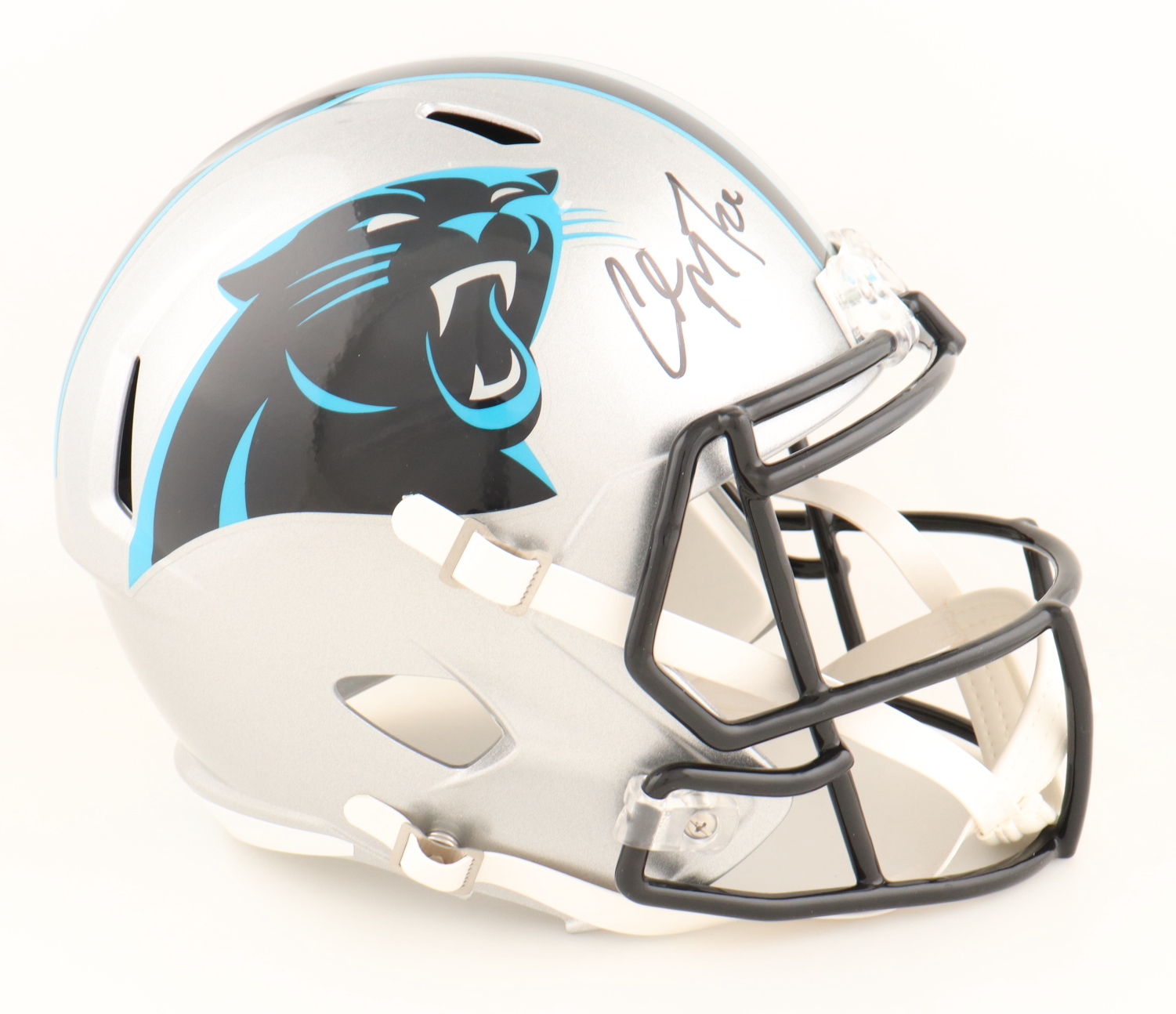 Riddell Carolina Panthers full-size replica Speed helmet. Hand-signed by Christian McCaffrey.