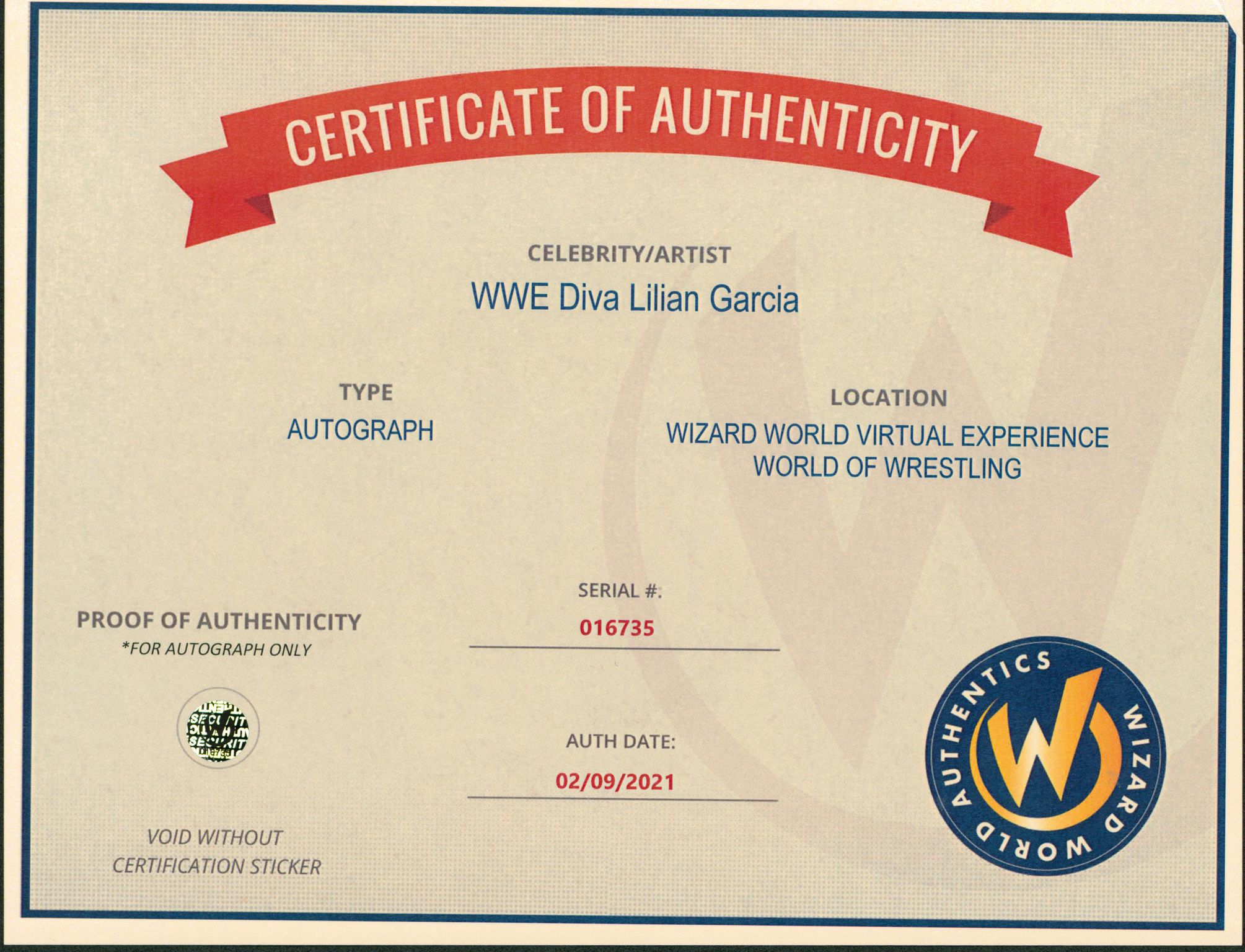 Authentication: Wizard World COA