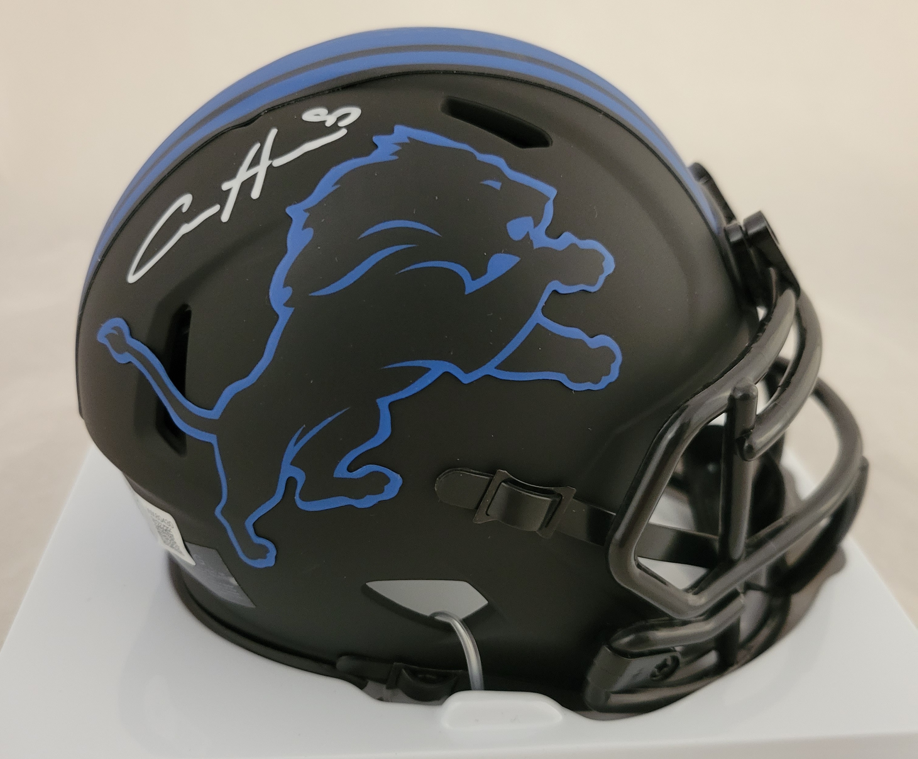 Riddell Detroit Lions Eclipse Alternate Speed mini helmet. Hand-signed by Aidan Hutchinson.
