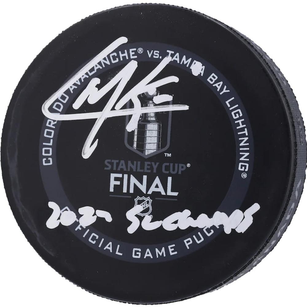 Cale Makar Signed 2022 Stanley Cup Final Hockey Puck Inscribed "2022 SC Champs" (Fanatics)