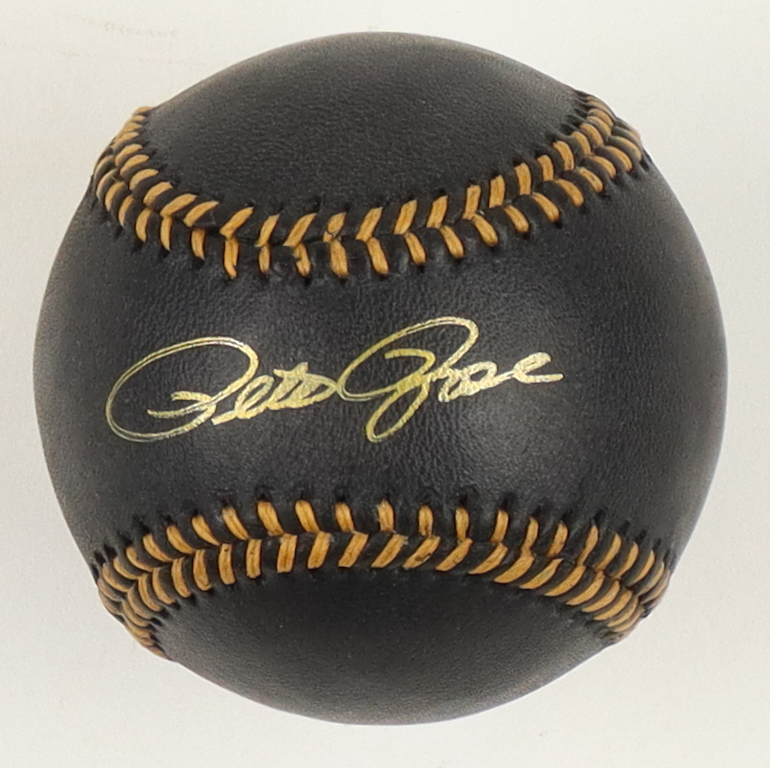 Rawlings Official Gold Signature Series Black Leather baseball. Hand-signed by Pete Rose (Cincinnati Reds).