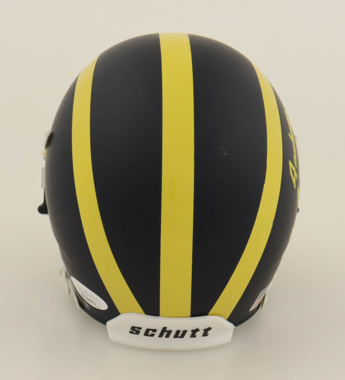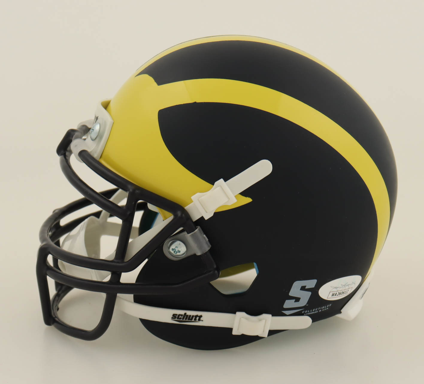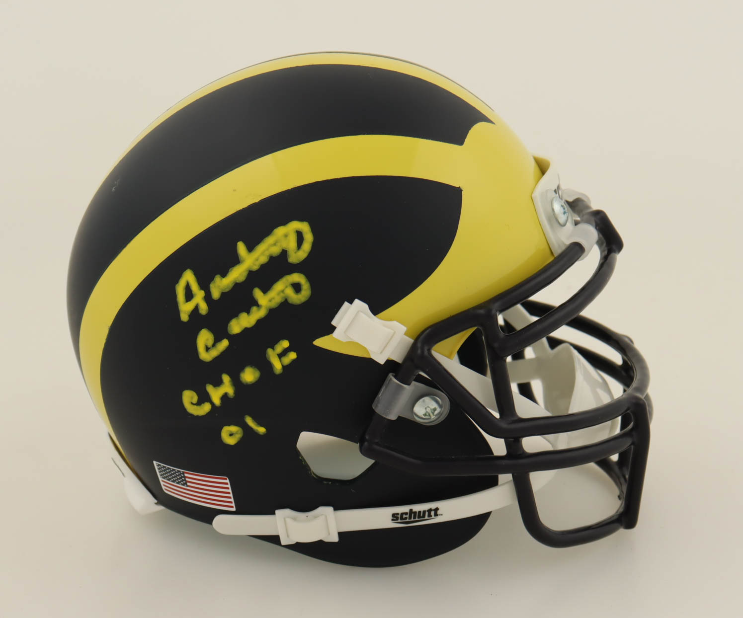 Schutt Michigan Wolverines mini helmet. Hand-signed and inscribed by Anthony Carter.