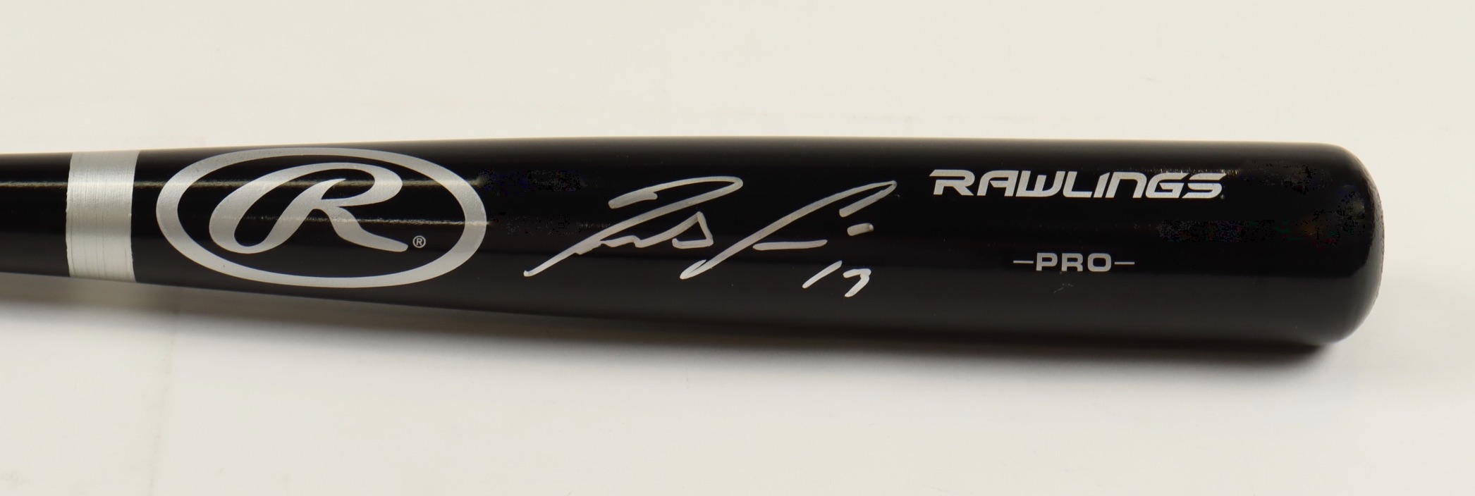 Rawlings Pro baseball bat has been hand-signed by Ronald Acuna Jr. (Atlanta Braves).