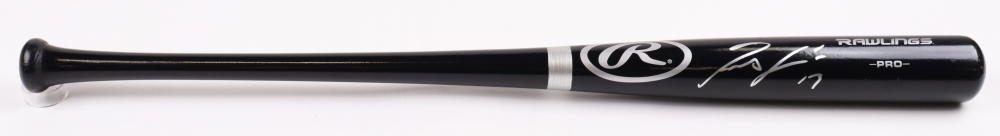 Rawlings Pro baseball bat has been hand-signed by Ronald Acuna Jr. (Atlanta Braves). Please note, there is minor staining on the bat.