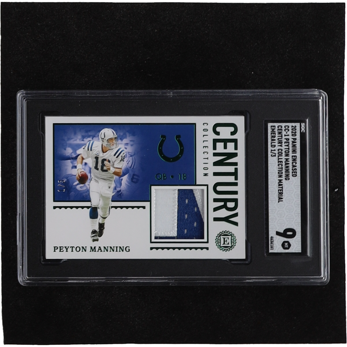 Peyton Manning 2020 Panini Encased Century Collection Materials Emerald #1 #1/3 (SGC 9)