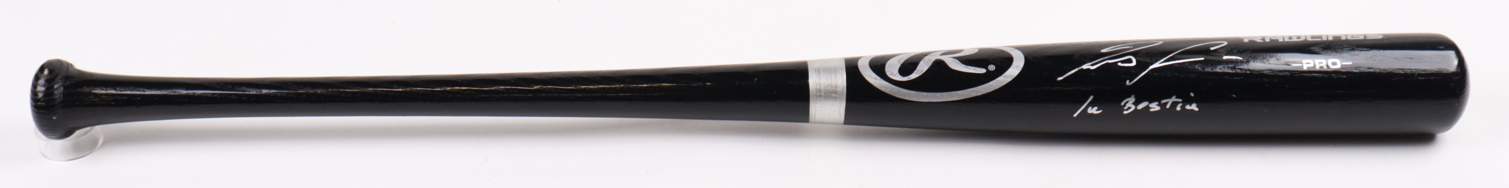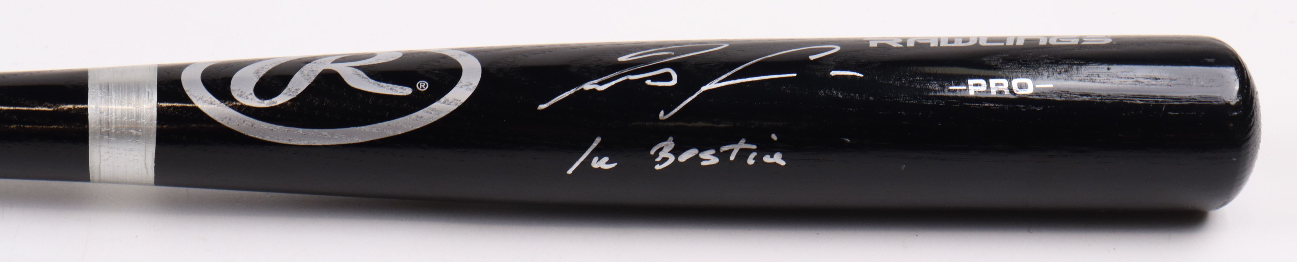 Rawlings Pro baseball bat. Hand-signed and insribed by Ronald Acuna Jr. (Atlanta Braves). Please note, there is scuffing on the end of the bat's barrel above the holograms.