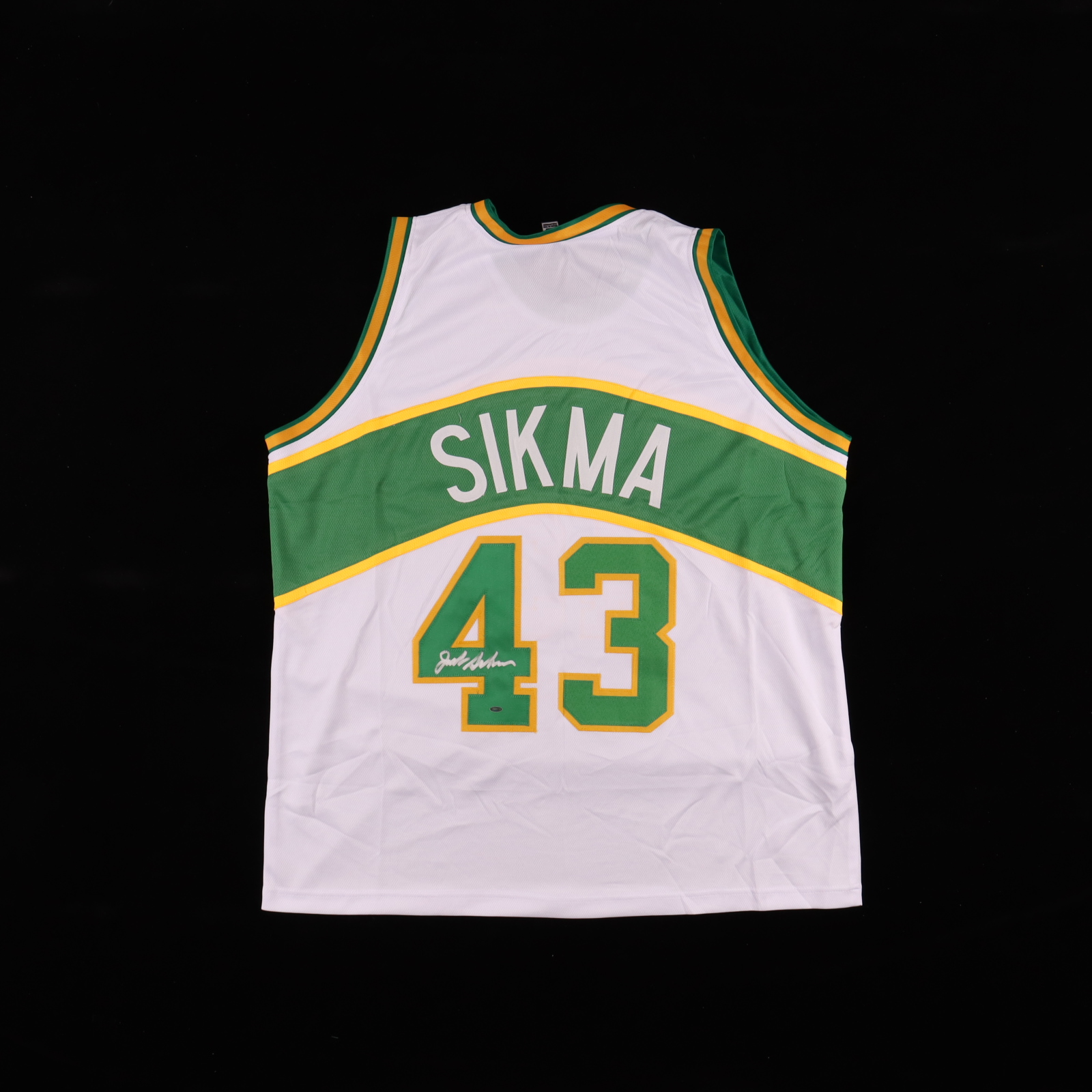 Custom on-court style jersey. Everything sewn on, size XL. Hand-signed by Jack Sikma (HOF).