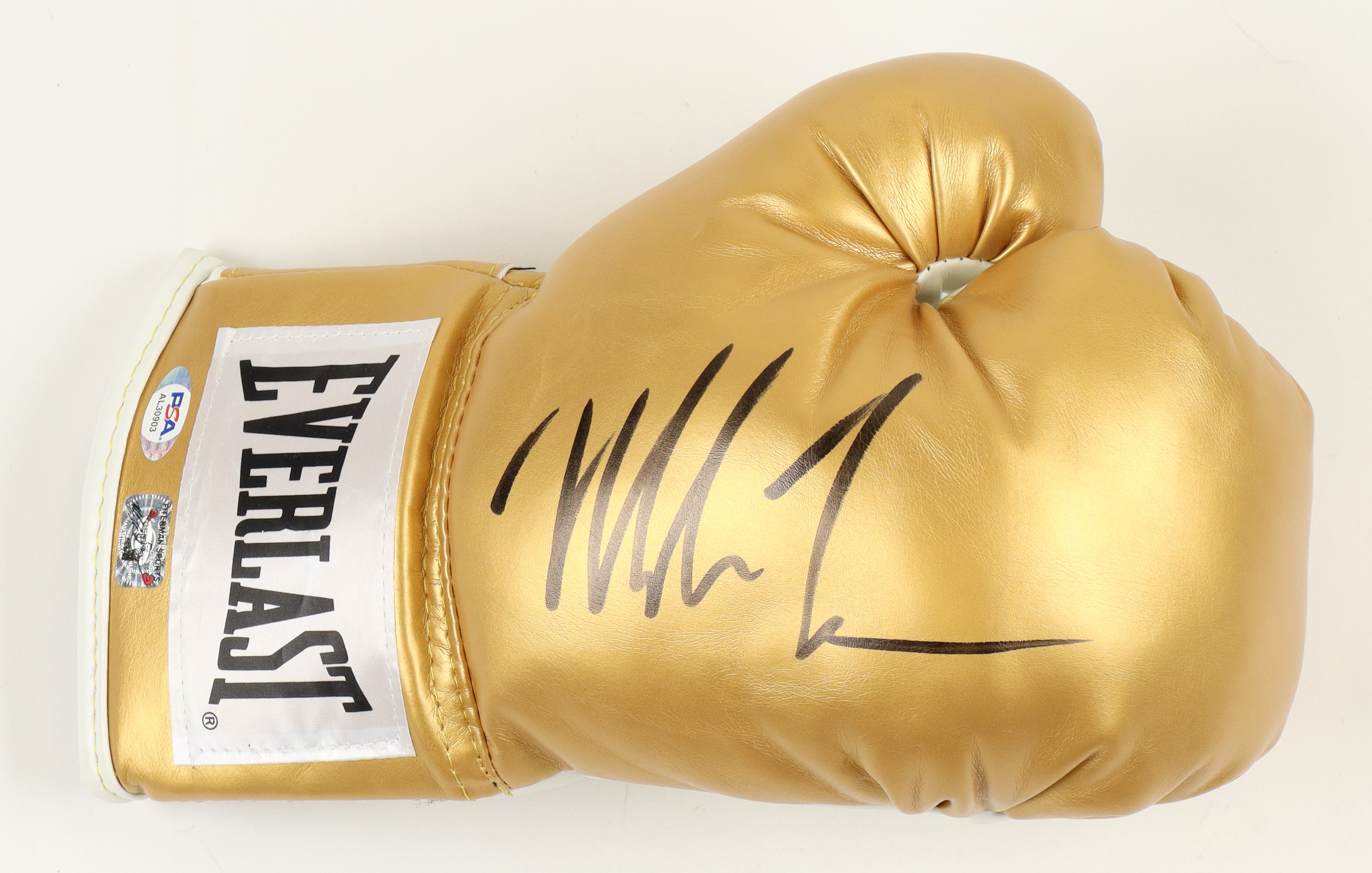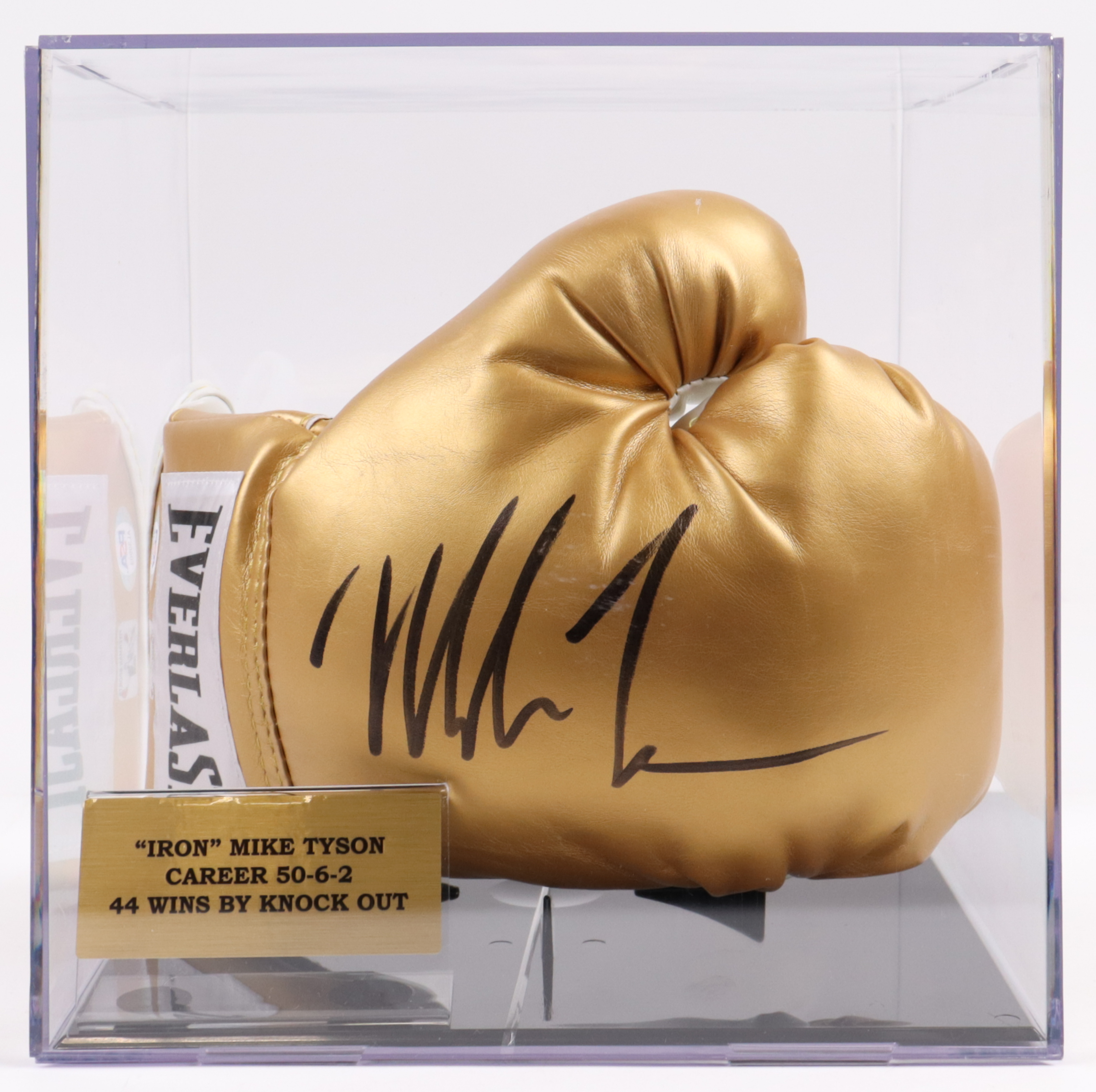 Everlast gold boxing glove has been hand-signed by Mike Tyson (HOF). The display case is included, as shown.