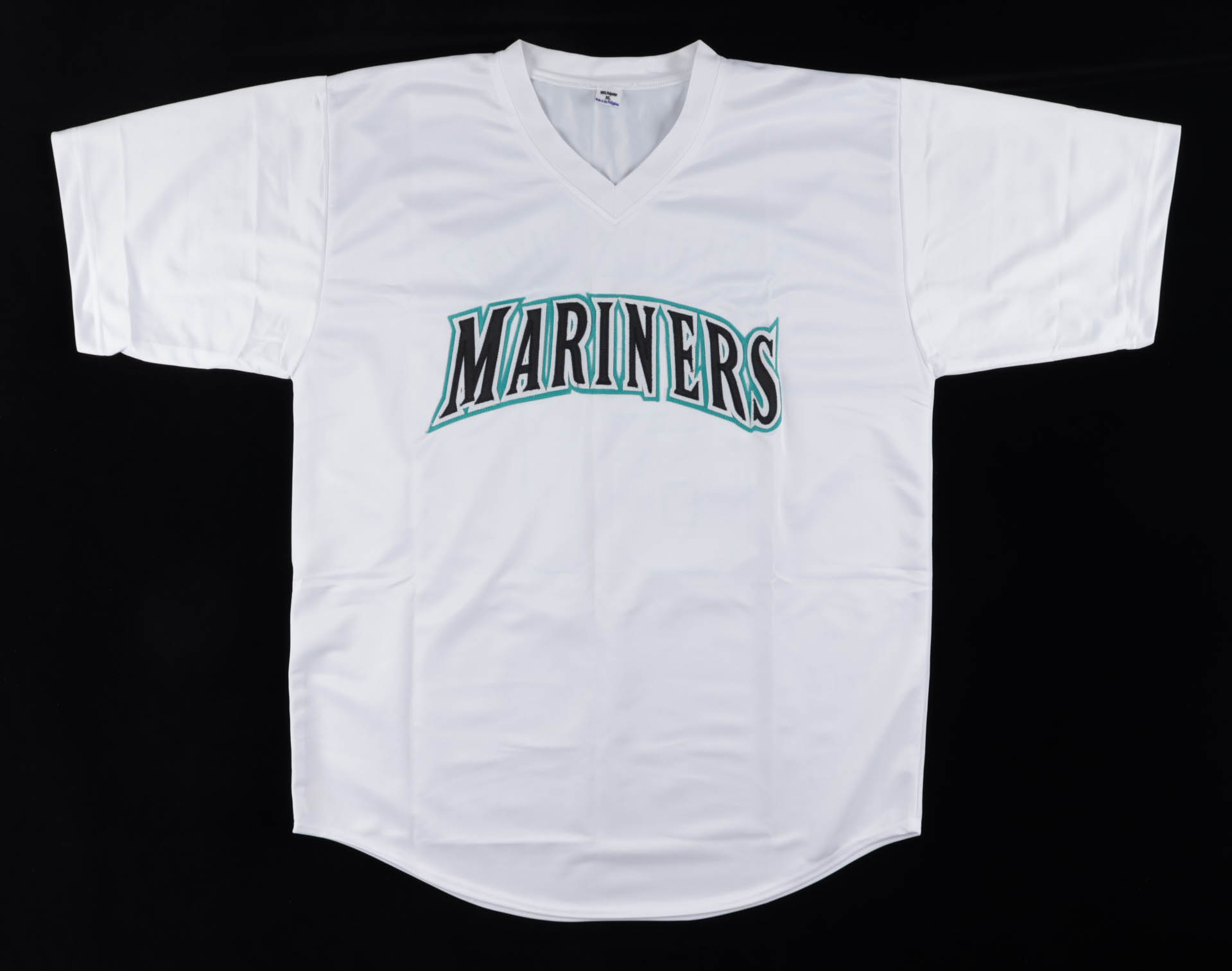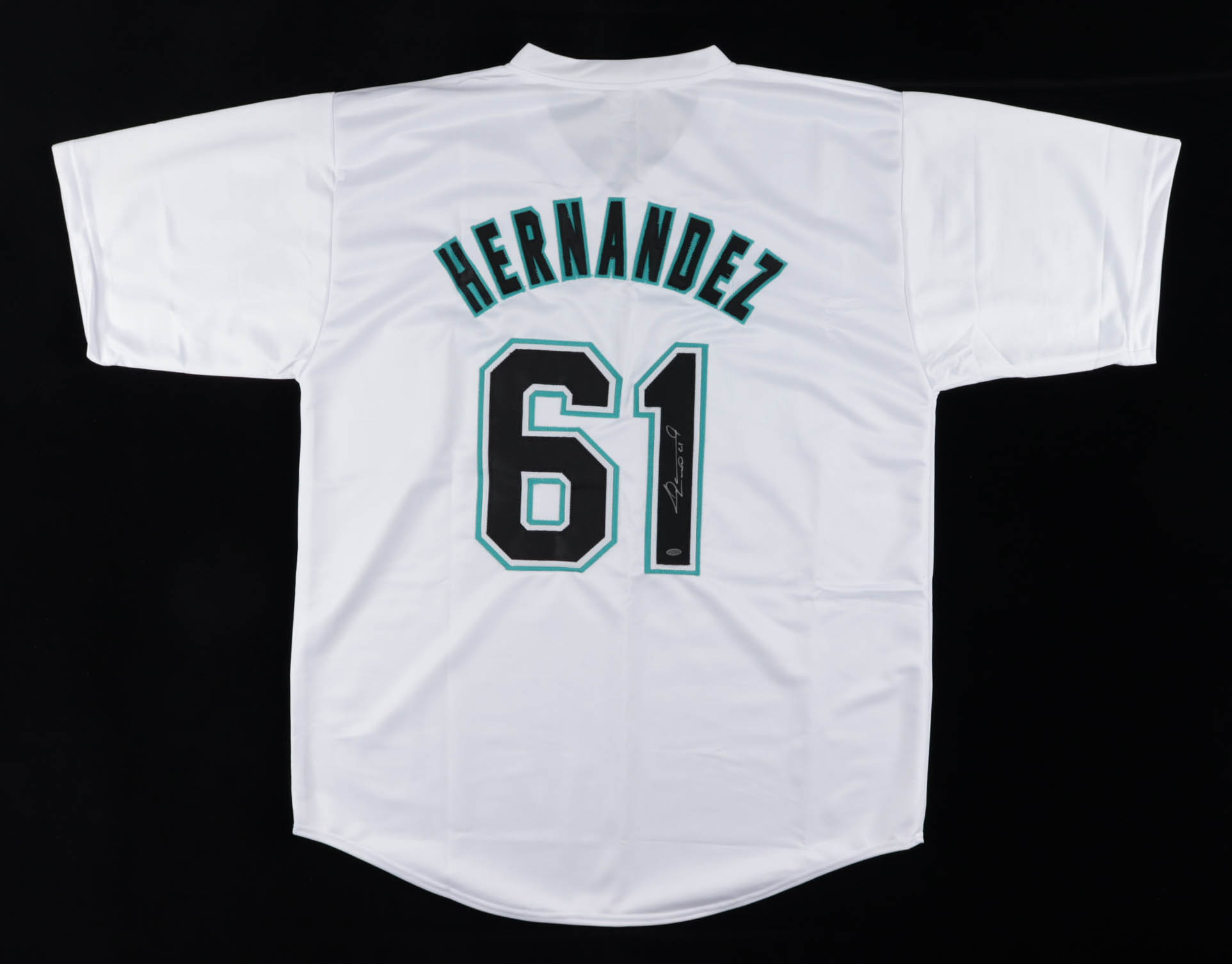 Custom on-field style jersey. Everything sewn on, size XL. Hand-signed by Felix Hernandez.