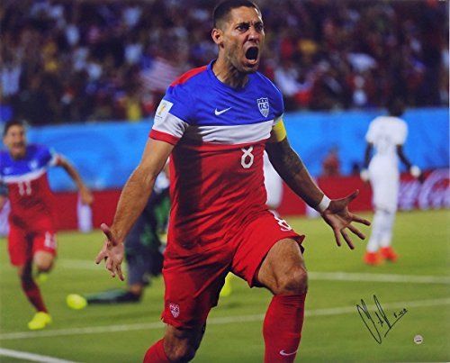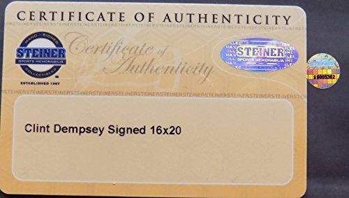 Photo measures 16" x 20" in size and has been hand-signed in blue felt-tip pen by Clint Dempsey (USA, Sounders).