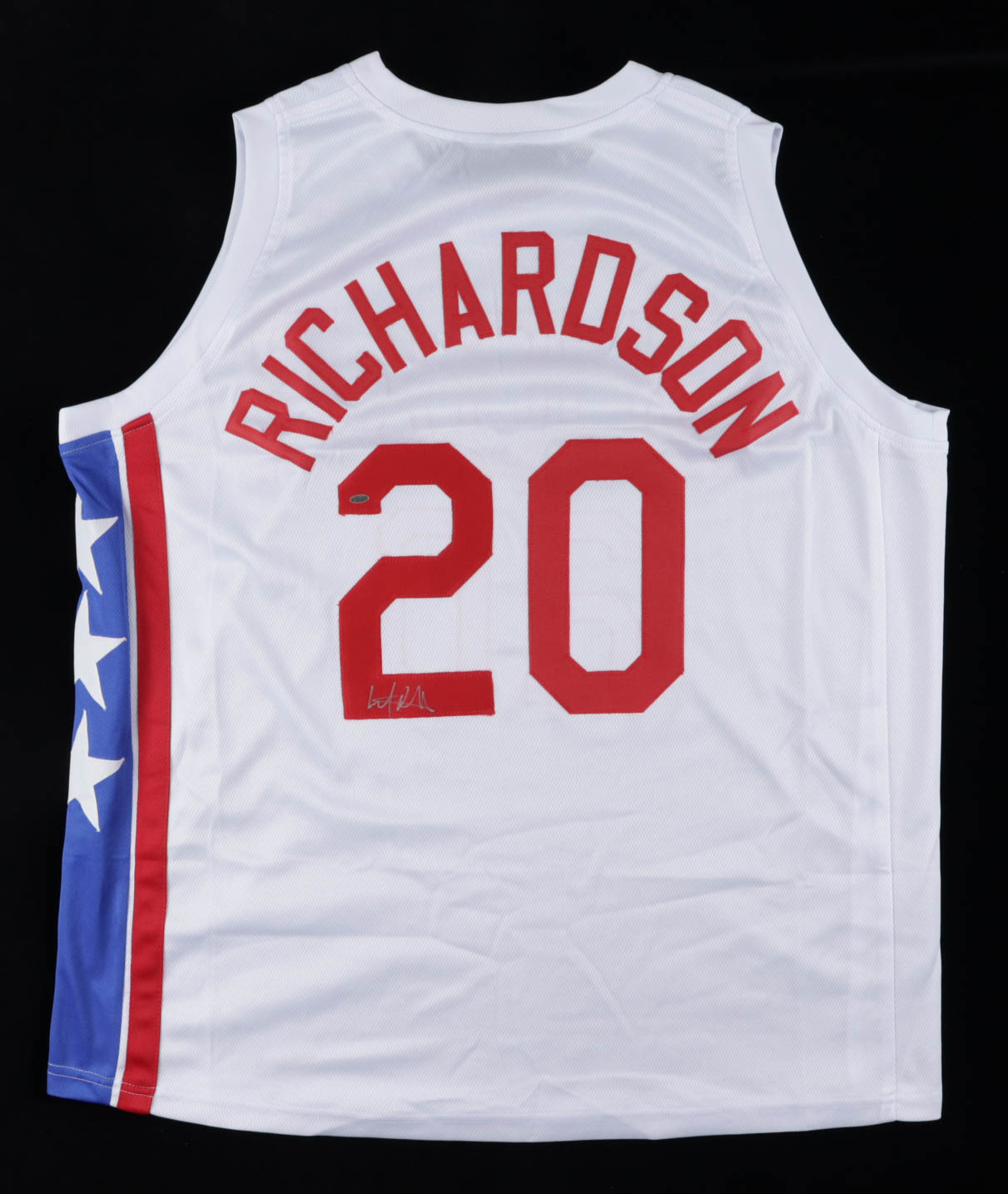 Custom on-field style jersey. Everything sewn on, size XL. Hand-signed by Michael Ray Richardson.