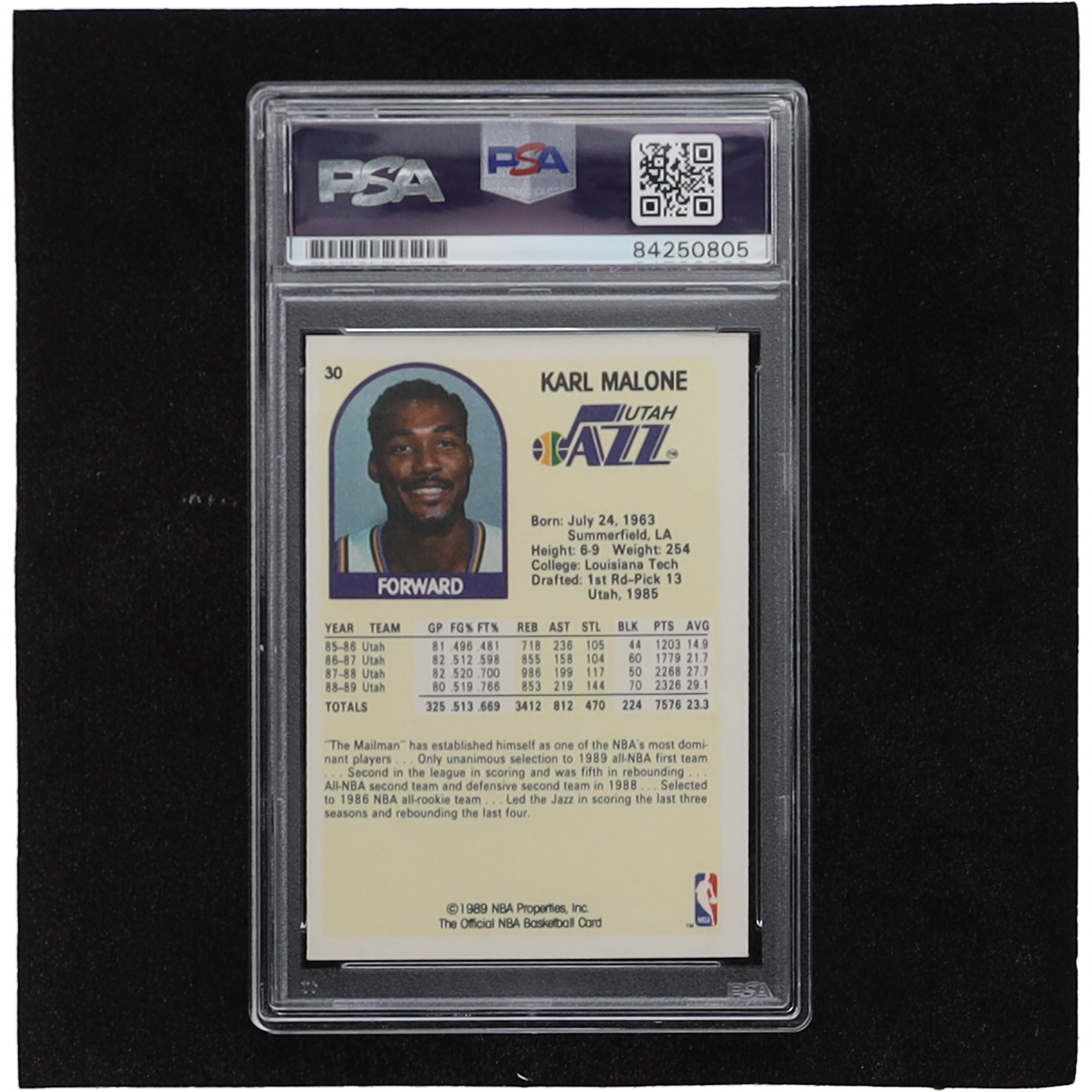 Karl Malone Signed Trading Card (PSA)