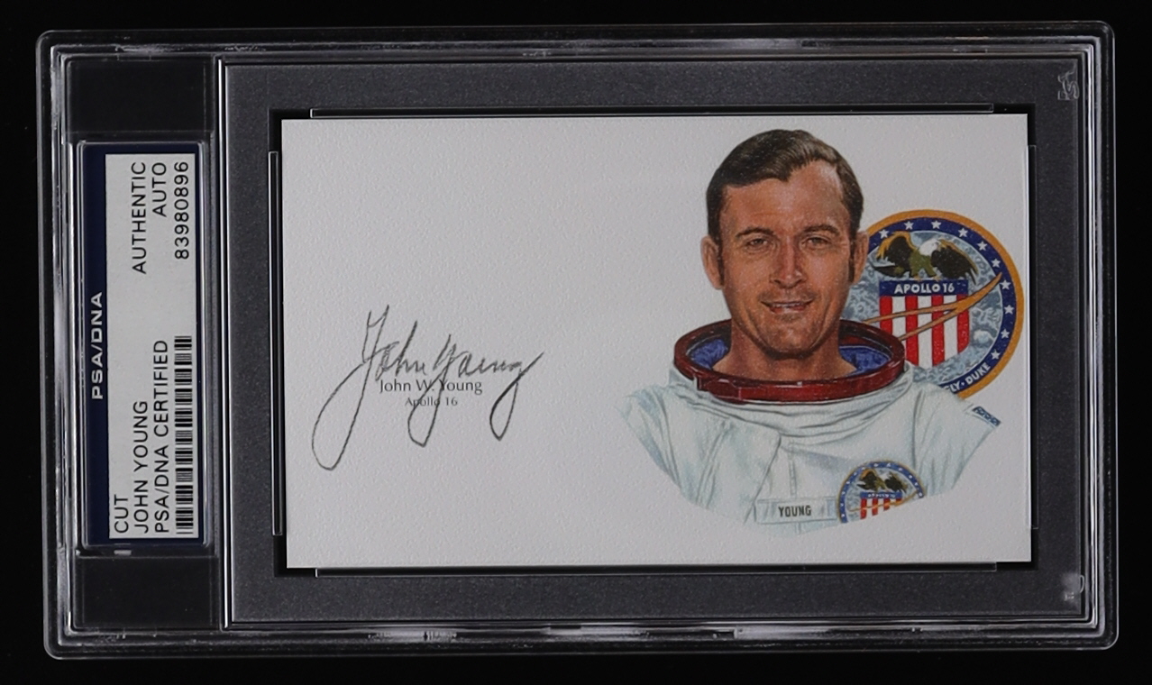 Cut measures 3" x 5" in size and has been hand signed by John Young (D. 2018).