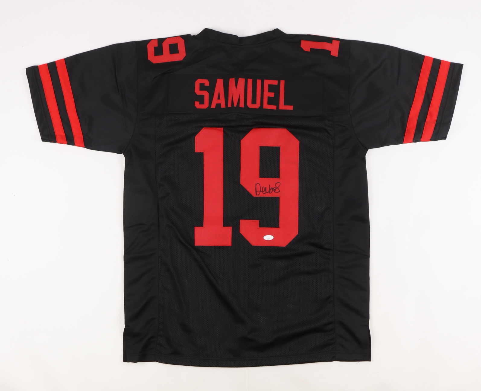 Custom on-field style jersey. Everything is sewn on, size XL. Hand-signed by Deebo Samuel.