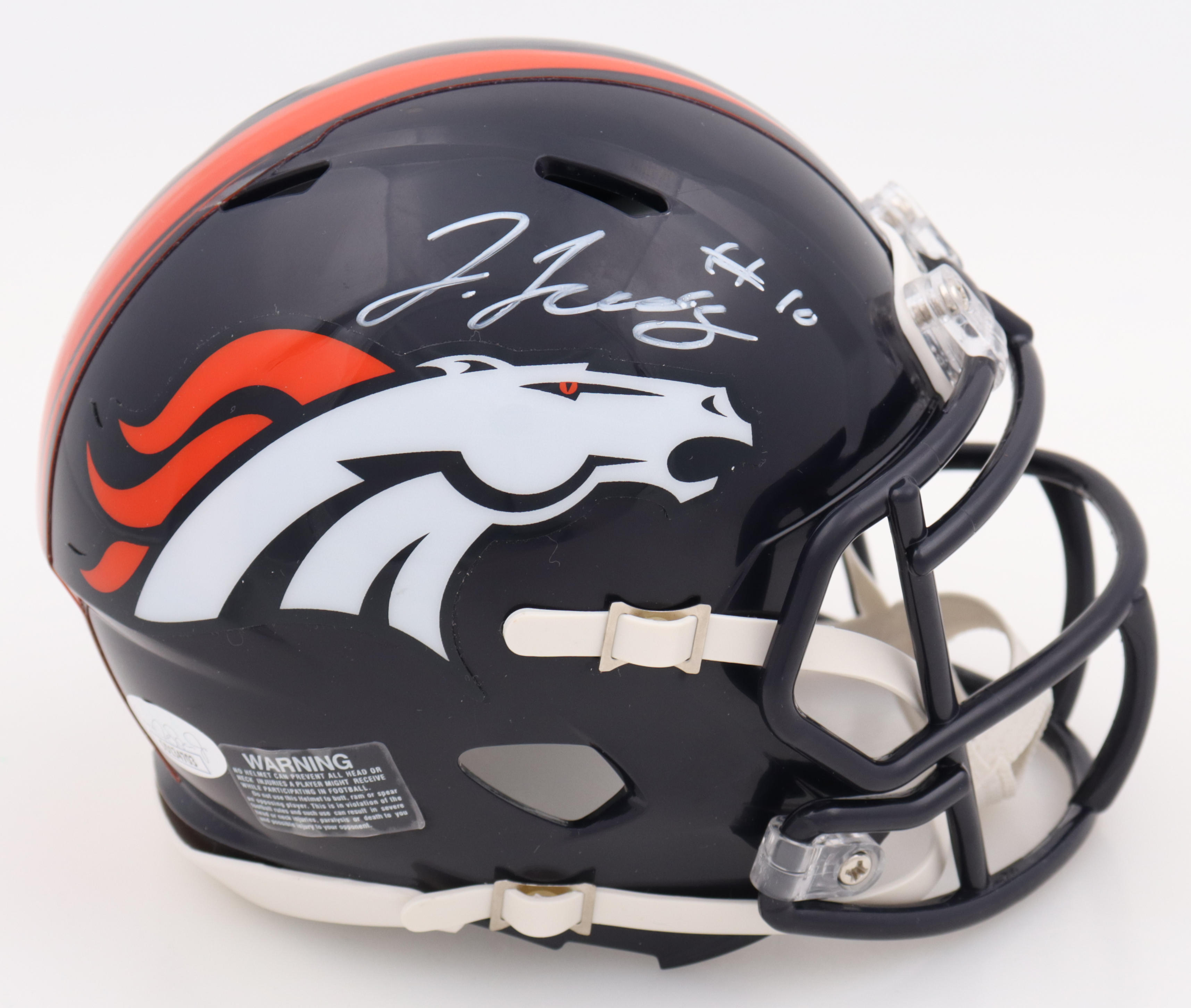 Riddell Denver Broncos Speed mini helmet. Hand-signed by Jerry Jeudy.