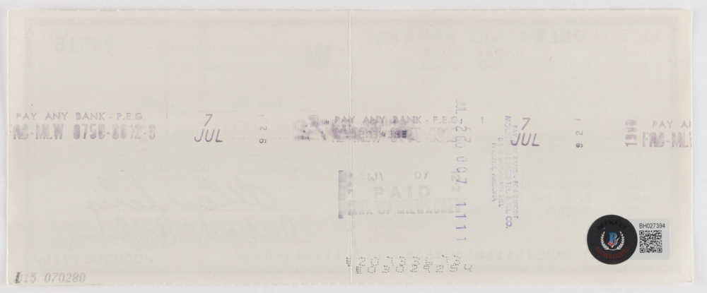 Bud Selig Signed Hand-Written 1980 Personal Bank Check (Beckett)