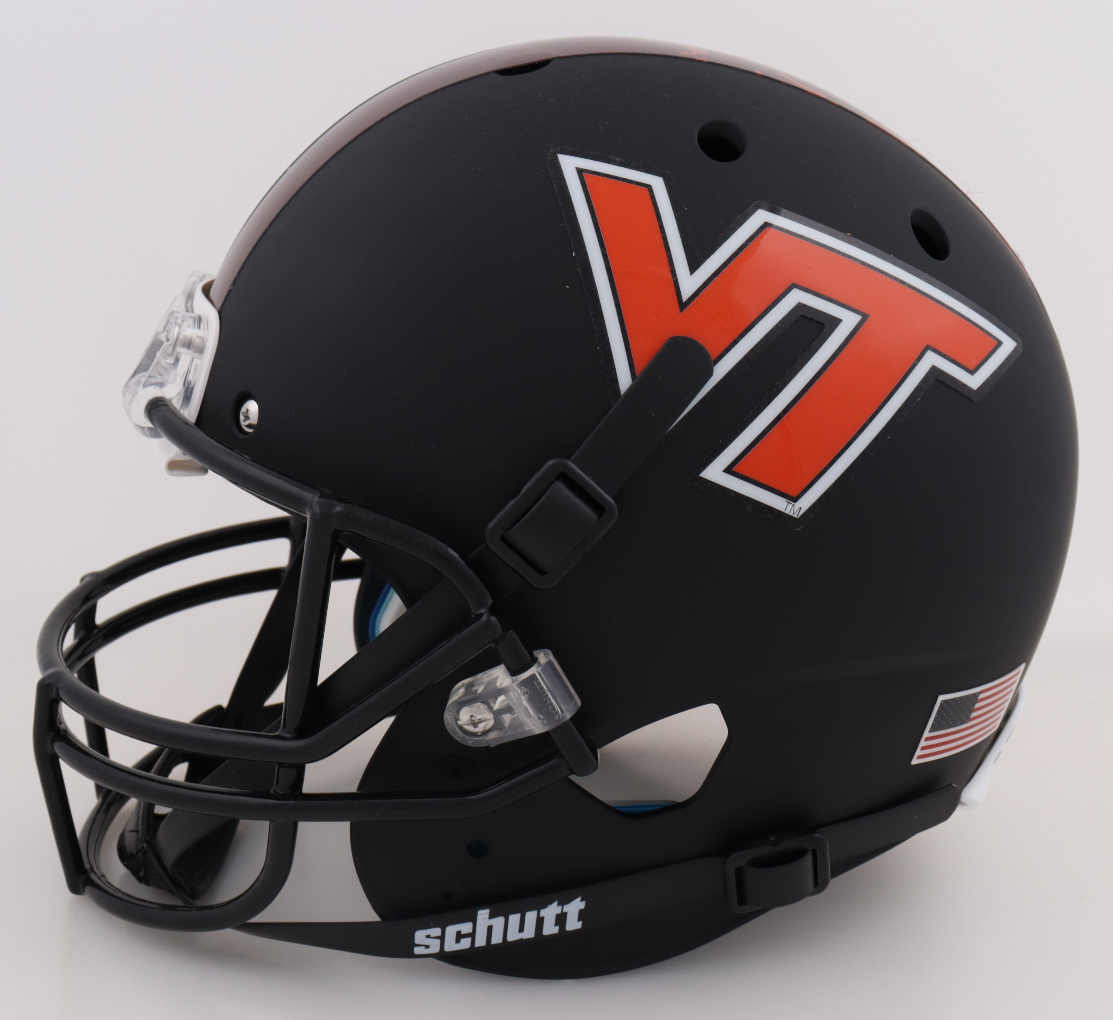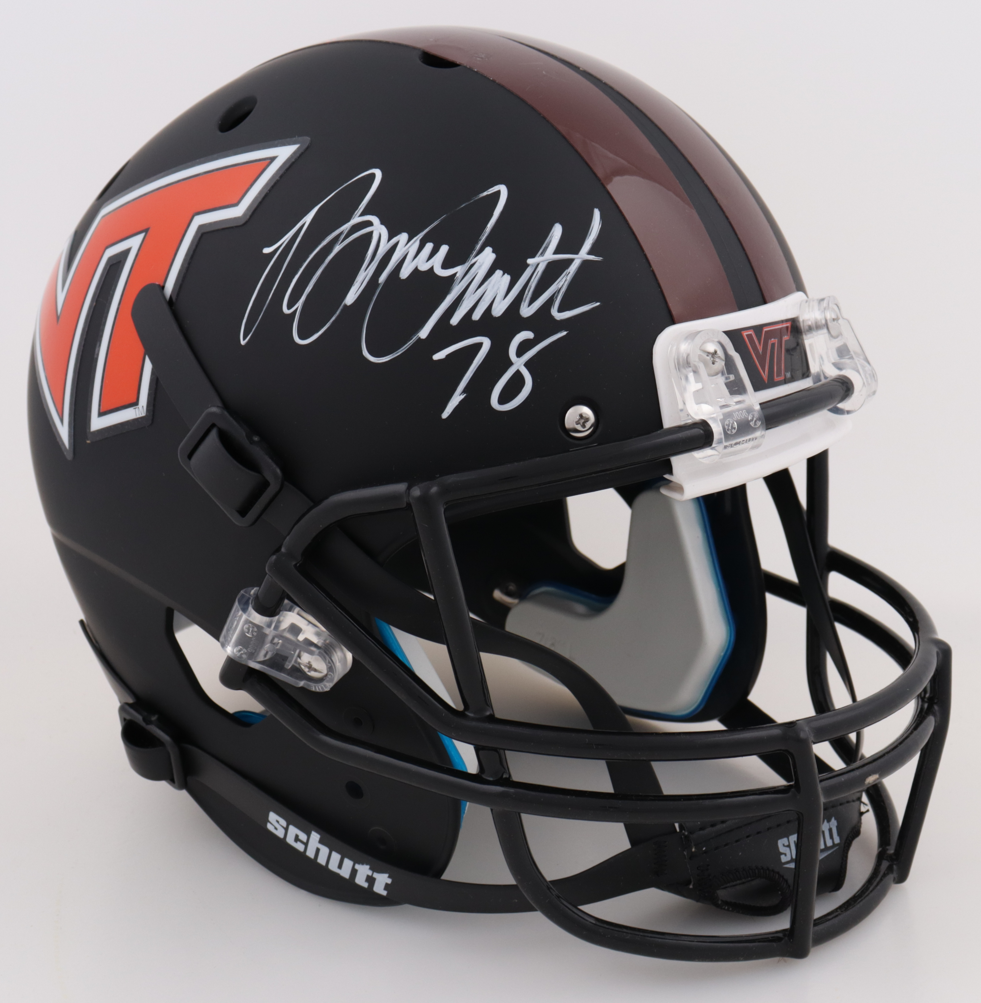 Schutt Virginia Tech Hokies Full-Size Replica Matte Black helmet. Hand-signed by Bruce Smith (HOF).