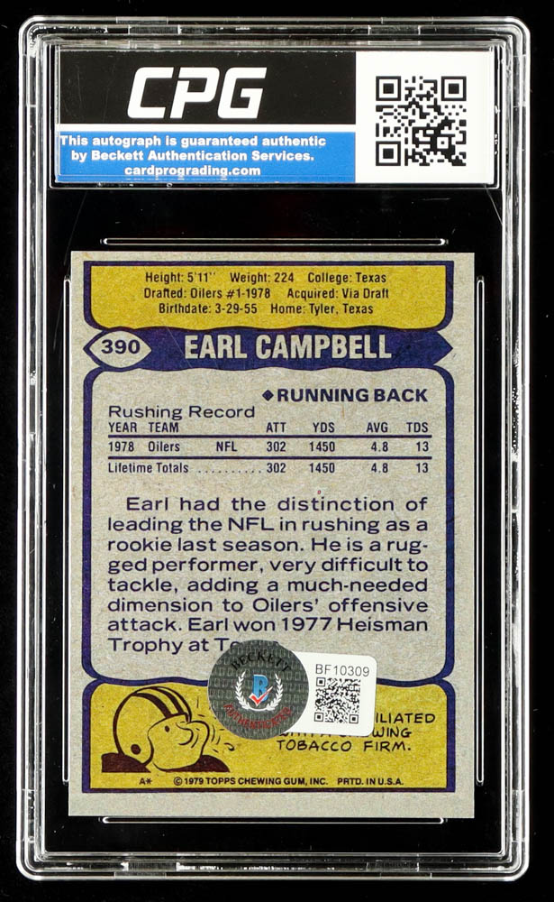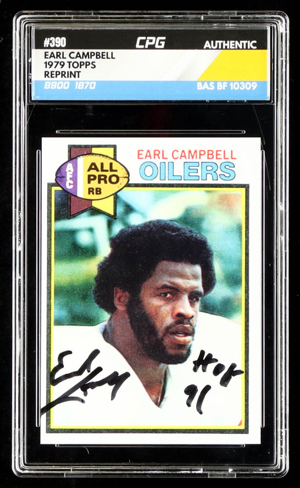 Earl Campbell Signed 1979 Topps #390 Reprint RC Inscribed "HOF 91" (CPG & Beckett)