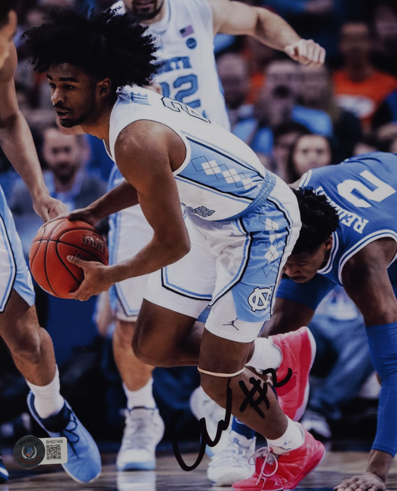 Photo measures 8" x 10" in size. Hand-signed by Coby White (North Carolina Tar Heels).