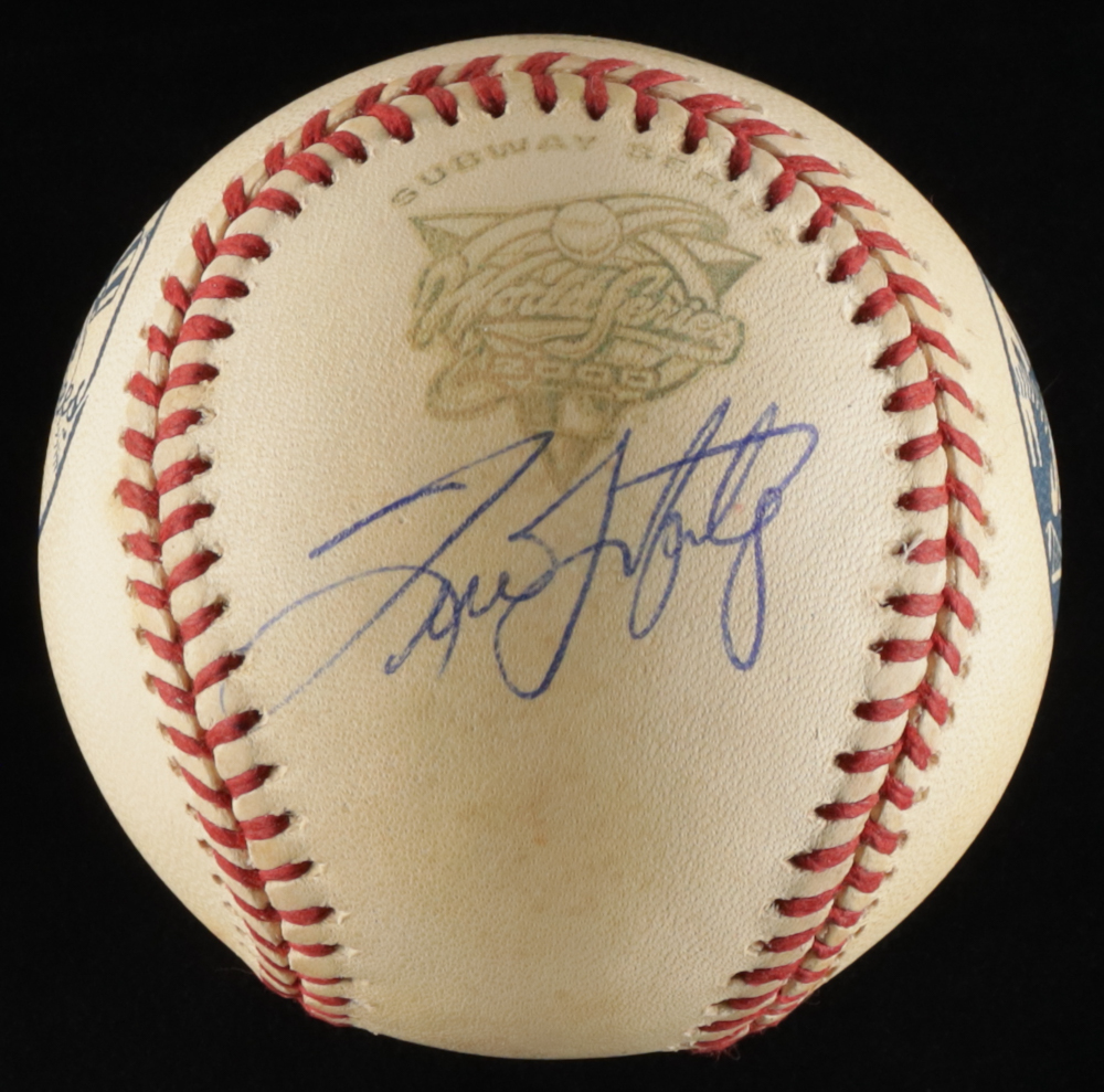 Rawlings Official 2000 World Series Logo Baseball. Hand-signed by Tino Martinez (New York Yankees). Please note, the baseball is naturally toned.