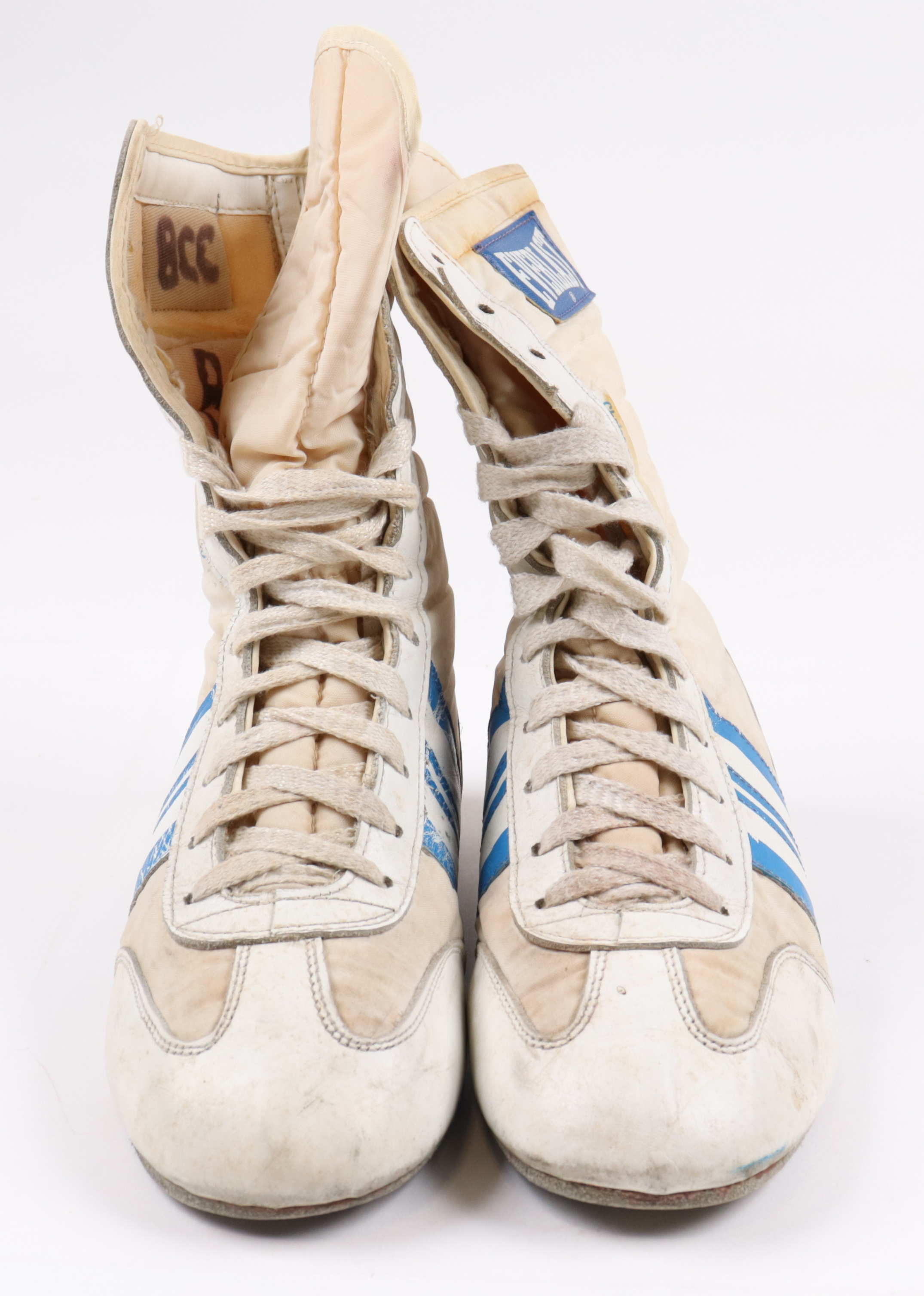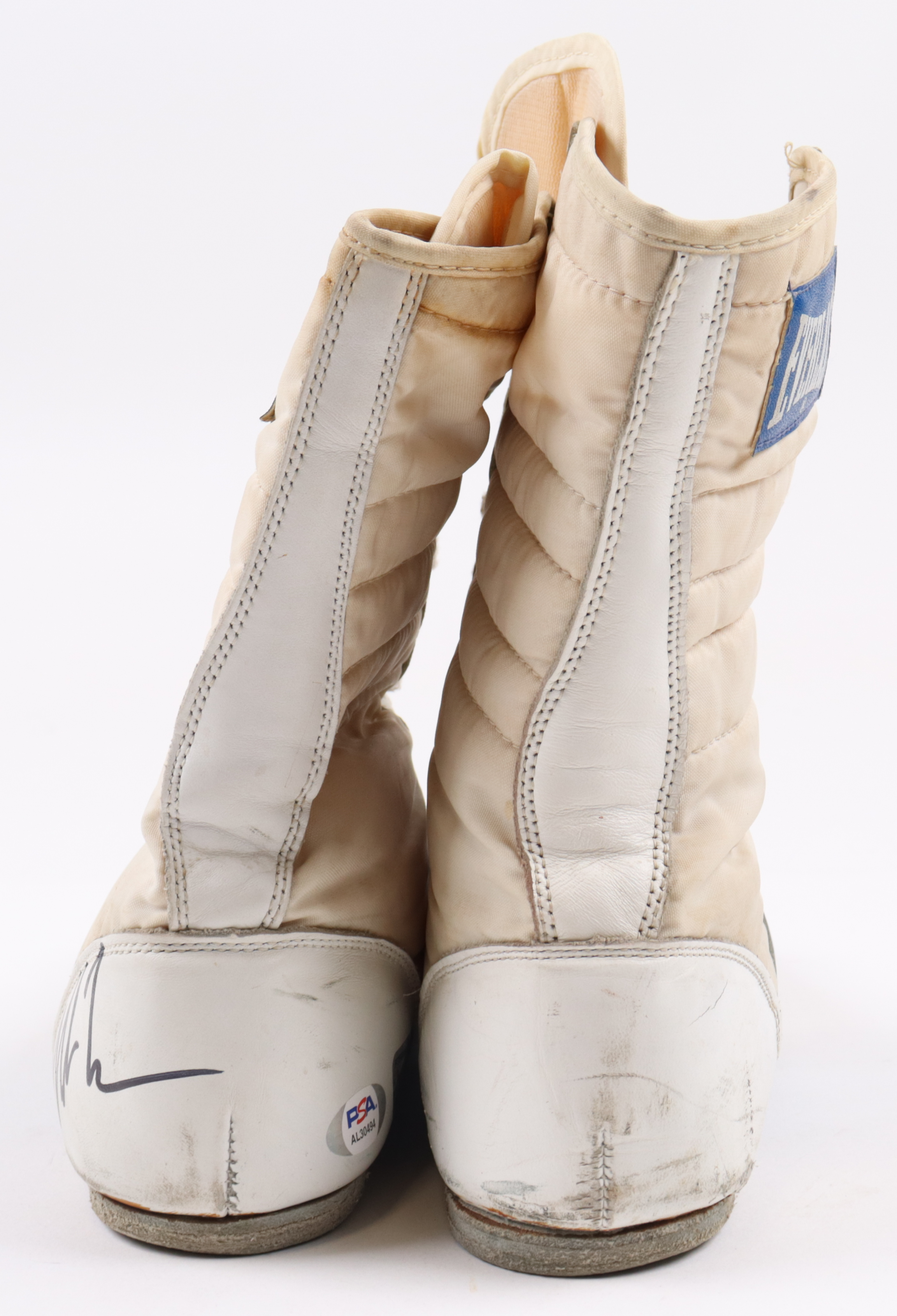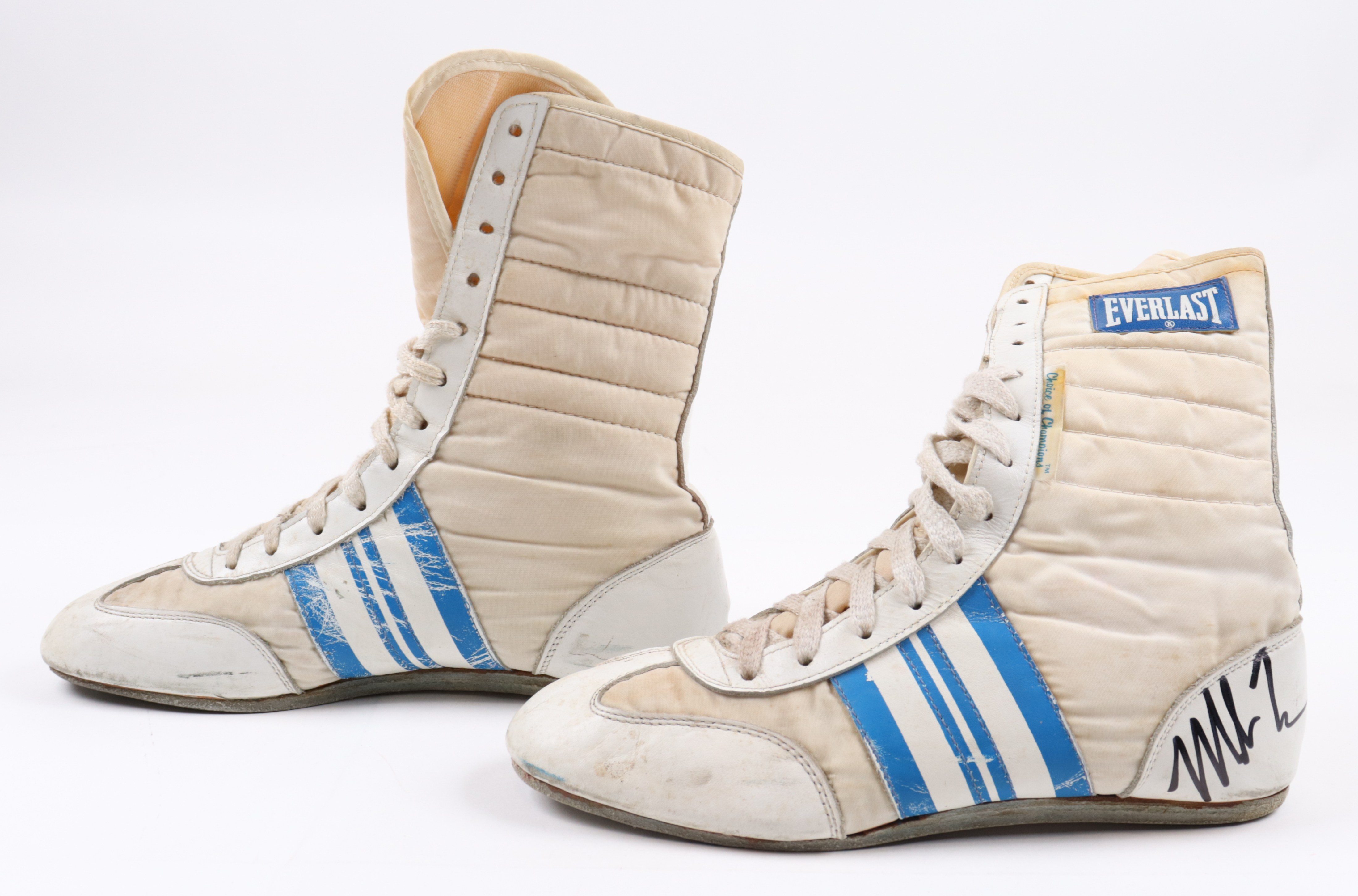 Pair of Title boxing shoes. The left shoe has been hand-signed by Mike Tyson (HOF).