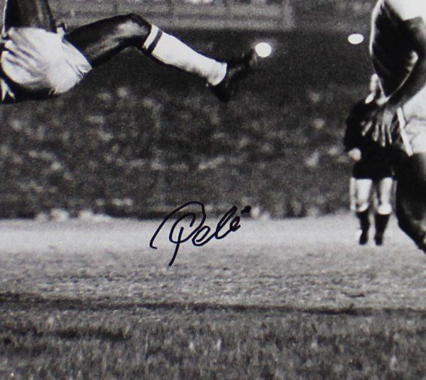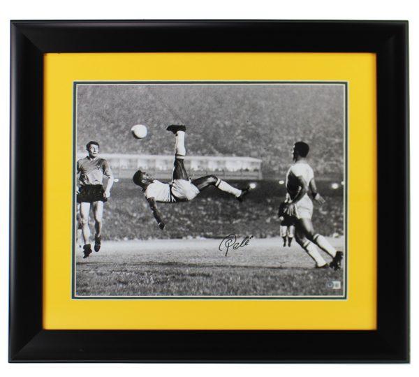 Custom frame measures approximately 24" x 28" in size and features a photo that has been hand-signed by Pele (Team Brazil, HOF).