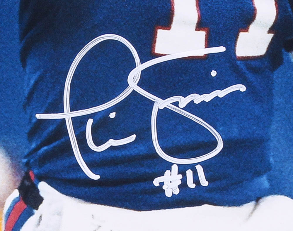 Photo measures 16" x 20" in size and has been hand-signed in white paint pen Phil Simms (giants).