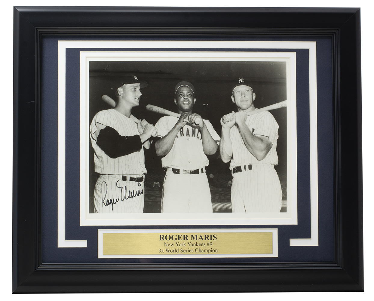 Custom framed photo display measures 11" x 14" in size and features a photo that has been hand-signed by Roger Maris (D. 1985, New York Yankees).