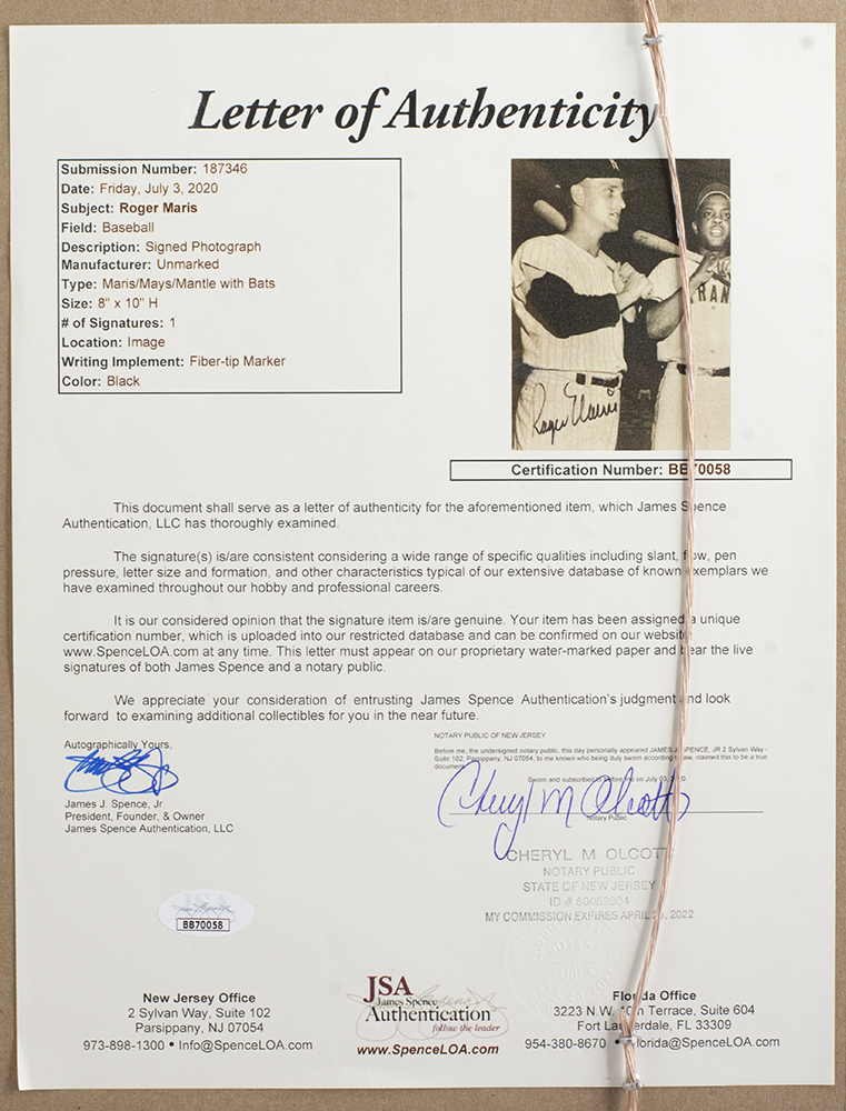 The lot / autograph(s) includes an official James Spence Authentication (JSA) hologram and matching LOA for authenticity purposes.